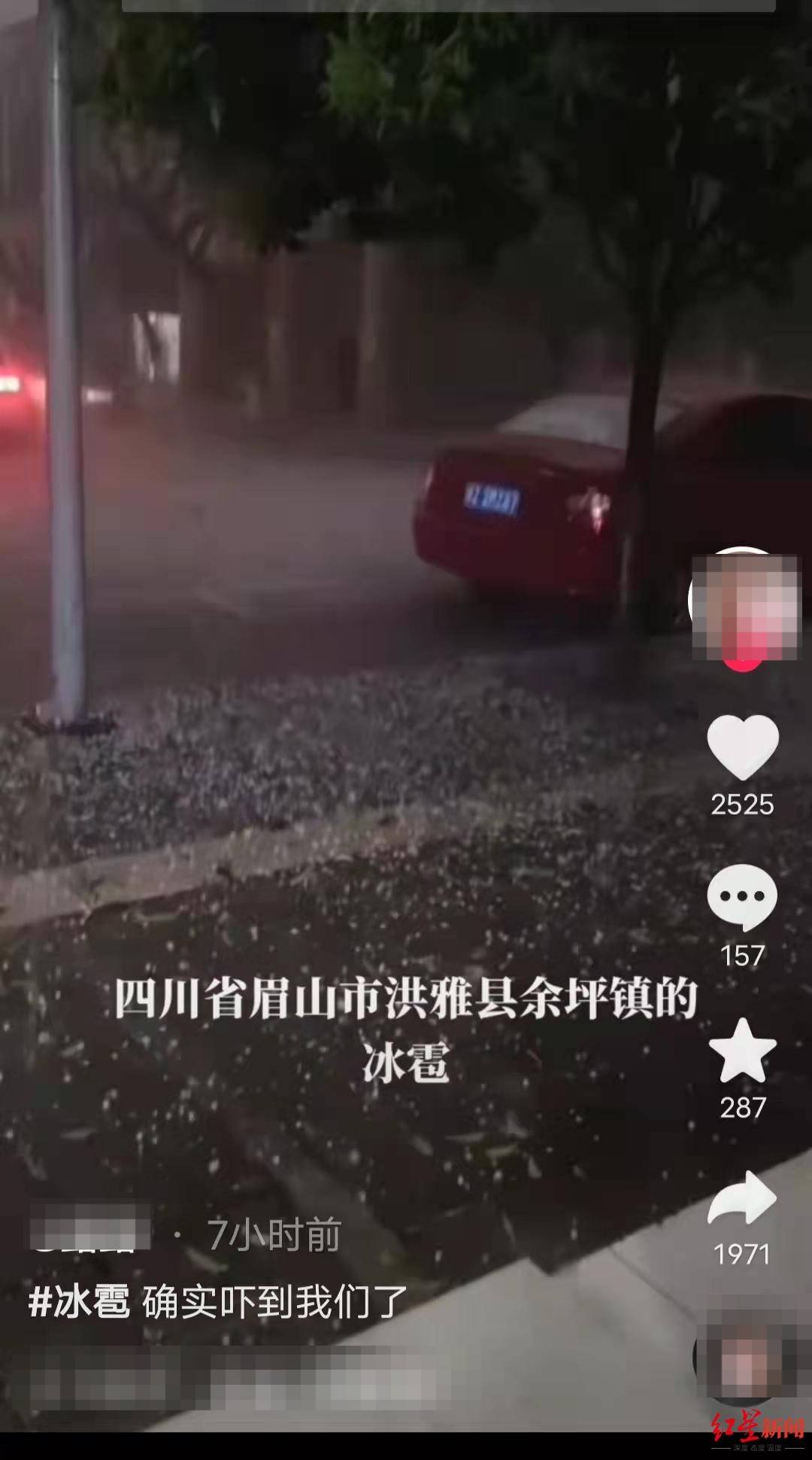 不仅仅是丹棱,洪雅部分地方也下起了冰雹。