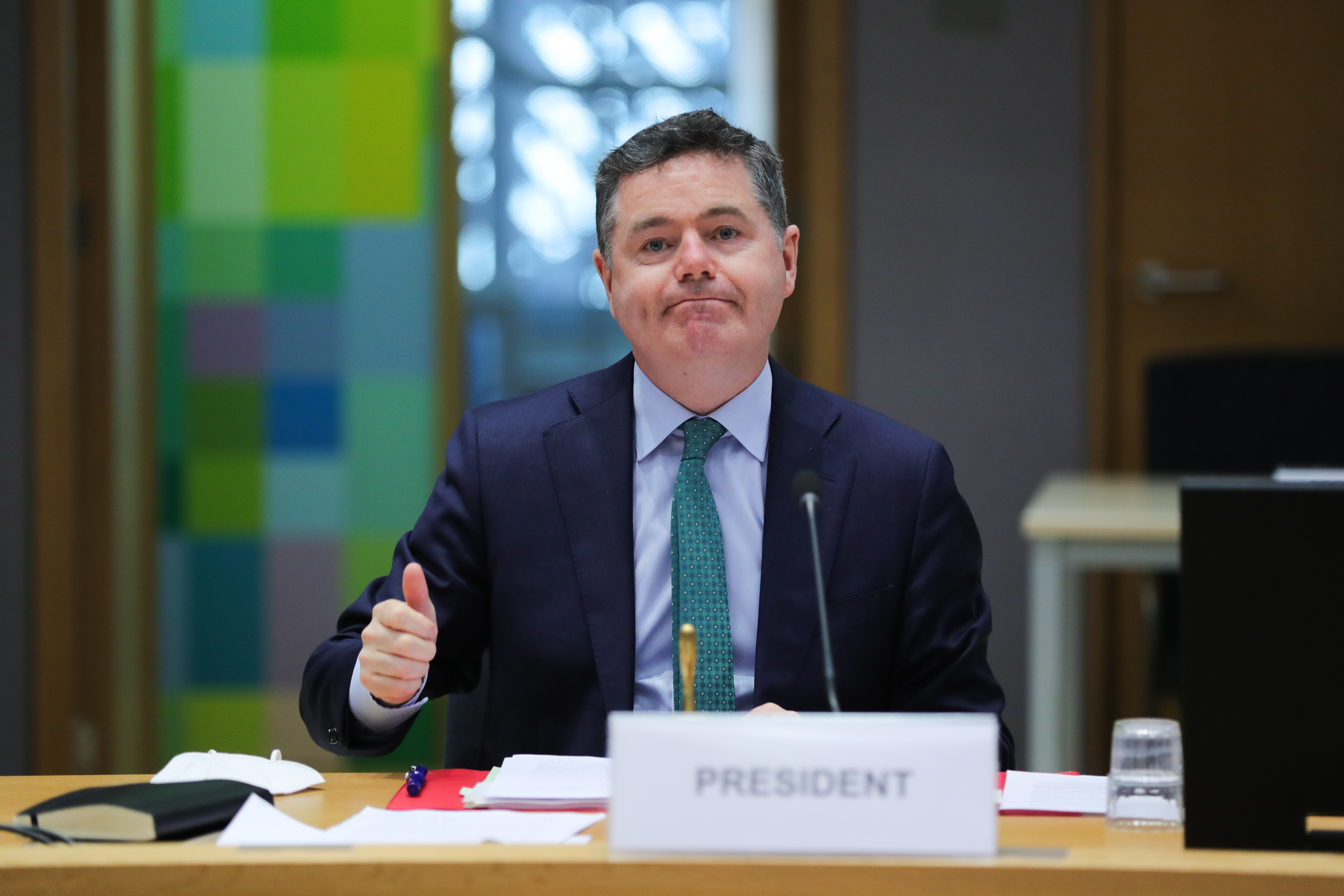 新华社照片,布鲁塞尔,2022年3月15日 (国际)(4)欧元集团会议在比利时布鲁塞尔举行 3月14日,欧元集团主席帕斯卡尔·多诺霍在比利时布鲁塞尔主持欧元集团会议。 当天,欧元集团会议在比利时布鲁塞尔举行。 新华社记者 郑焕松 摄