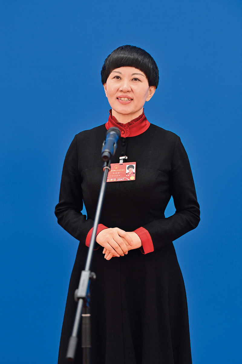 2022年3月8日,在第十三届全国人民代表大会第五次会议第二场“代表通道”采访活动中,全国人大代表、重庆市谢家湾学校校长刘希娅通过网络视频方式就“双减”政策接受媒体采访 李鑫摄/本刊