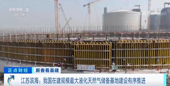 在江苏滨海液化天然气接收站项目的工程现场,2400多名工人正在各个点位进行施工。作为我国在建规模最大的液化天然气储备基地,该项目一期工程共建造10座大型液化天然气储罐。该项目一期工程建成后,液化天然气年处理能力可达600万吨,按照江苏省居民每天用气量约1000万方计算,可供全省民生用气约28个月。