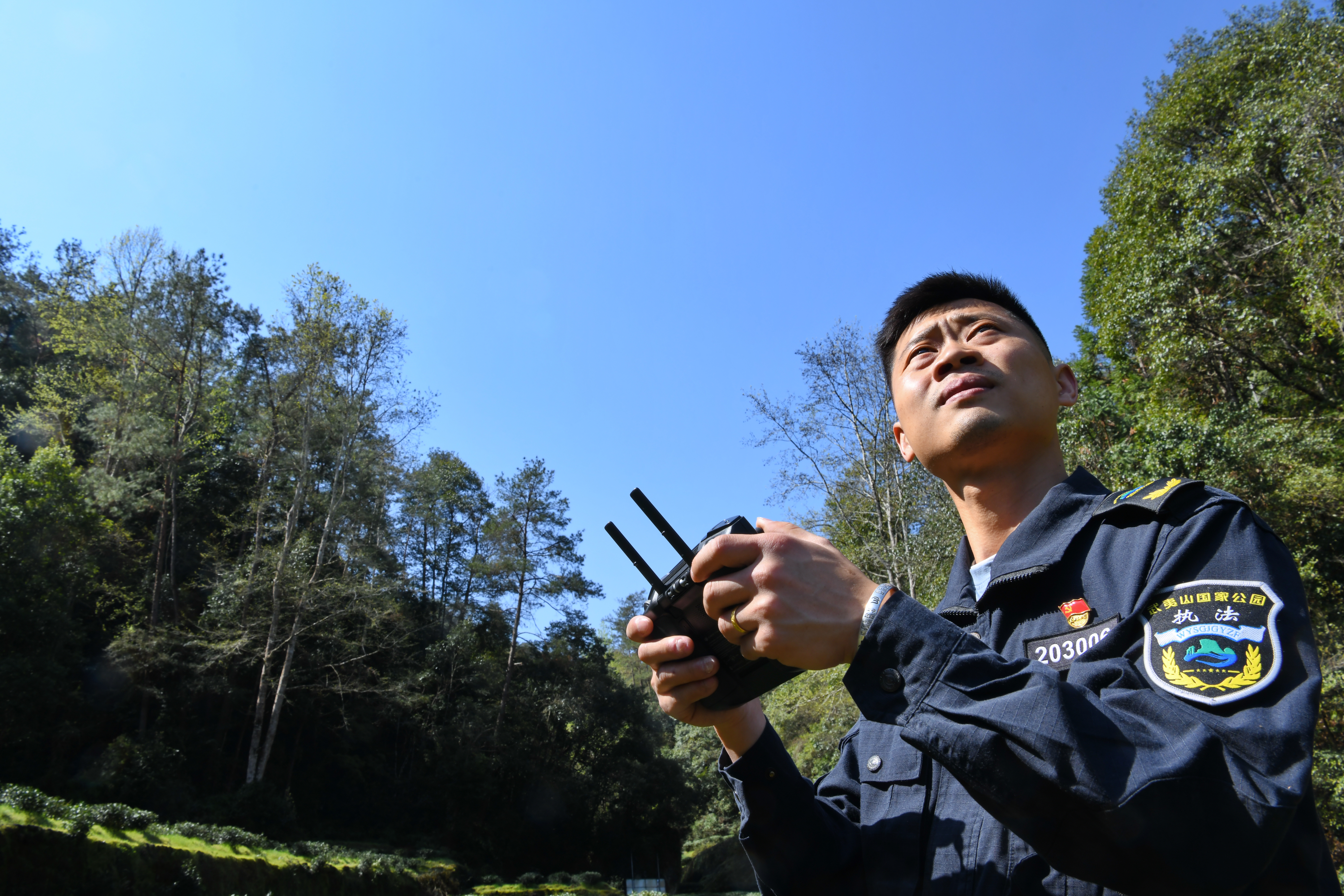 新华社照片,武夷山(福建),2022年3月15日 福建武夷山:国家公园守护人 3月15日,武夷山国家公园执法人员在使用无人机进行高空巡护。 自福建武夷山国家公园正式设立以来,武夷山国家公园活跃着一支由近200人组成的生态保护执法队伍,他们日夜守护在武夷山国家公园内,利用红外监控相机、无人机、巡护助手、执法记录仪等,不断加大环境保护执法力度,全力筑牢生态安全屏障,守护好武夷山的绿水青山。 新华社发(陈颖 摄)