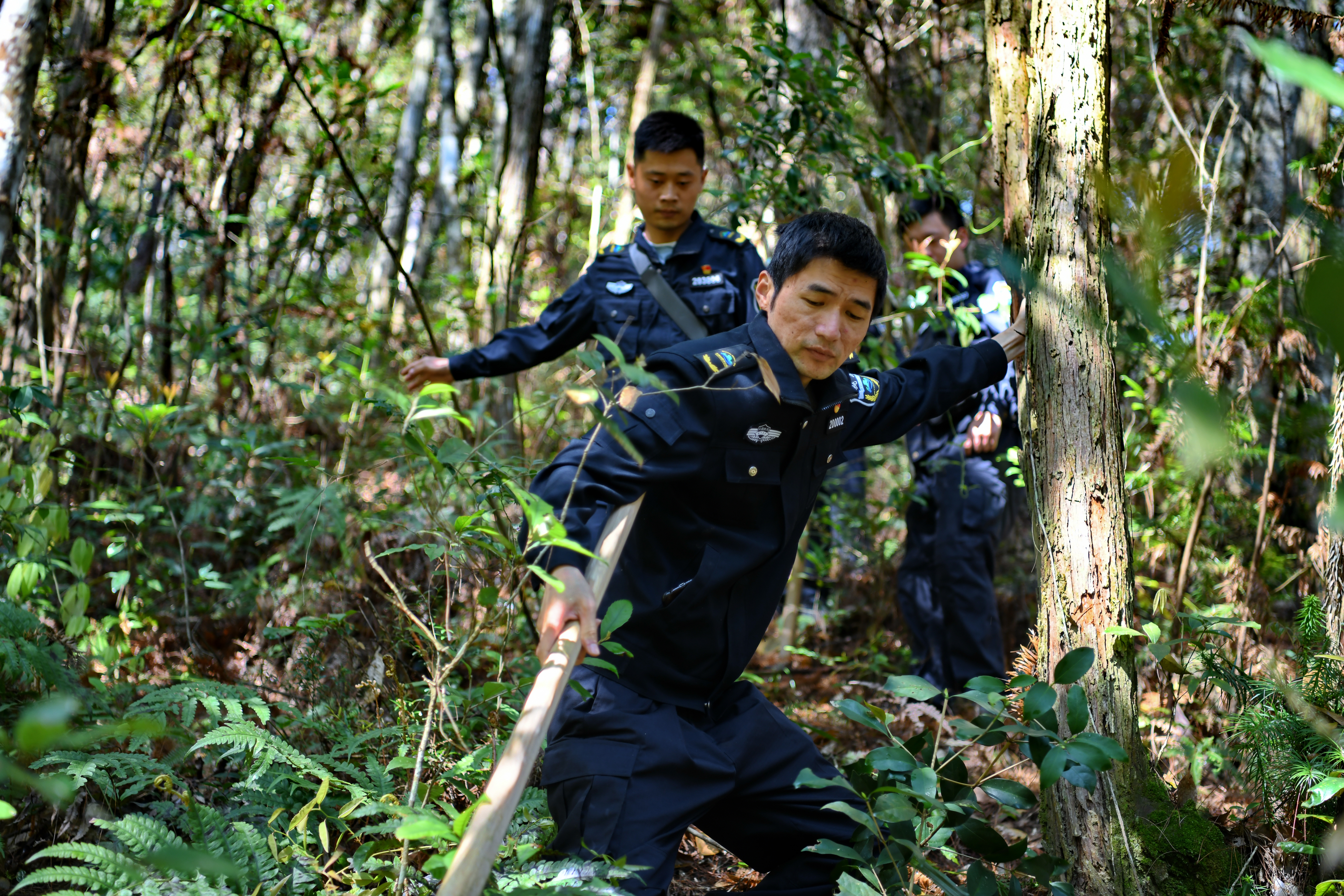 新华社照片,武夷山(福建),2022年3月15日 福建武夷山:国家公园守护人 3月15日,武夷山国家公园执法人员在辖区林地巡查。 自福建武夷山国家公园正式设立以来,武夷山国家公园活跃着一支由近200人组成的生态保护执法队伍,他们日夜守护在武夷山国家公园内,利用红外监控相机、无人机、巡护助手、执法记录仪等,不断加大环境保护执法力度,全力筑牢生态安全屏障,守护好武夷山的绿水青山。 新华社发(陈颖 摄)