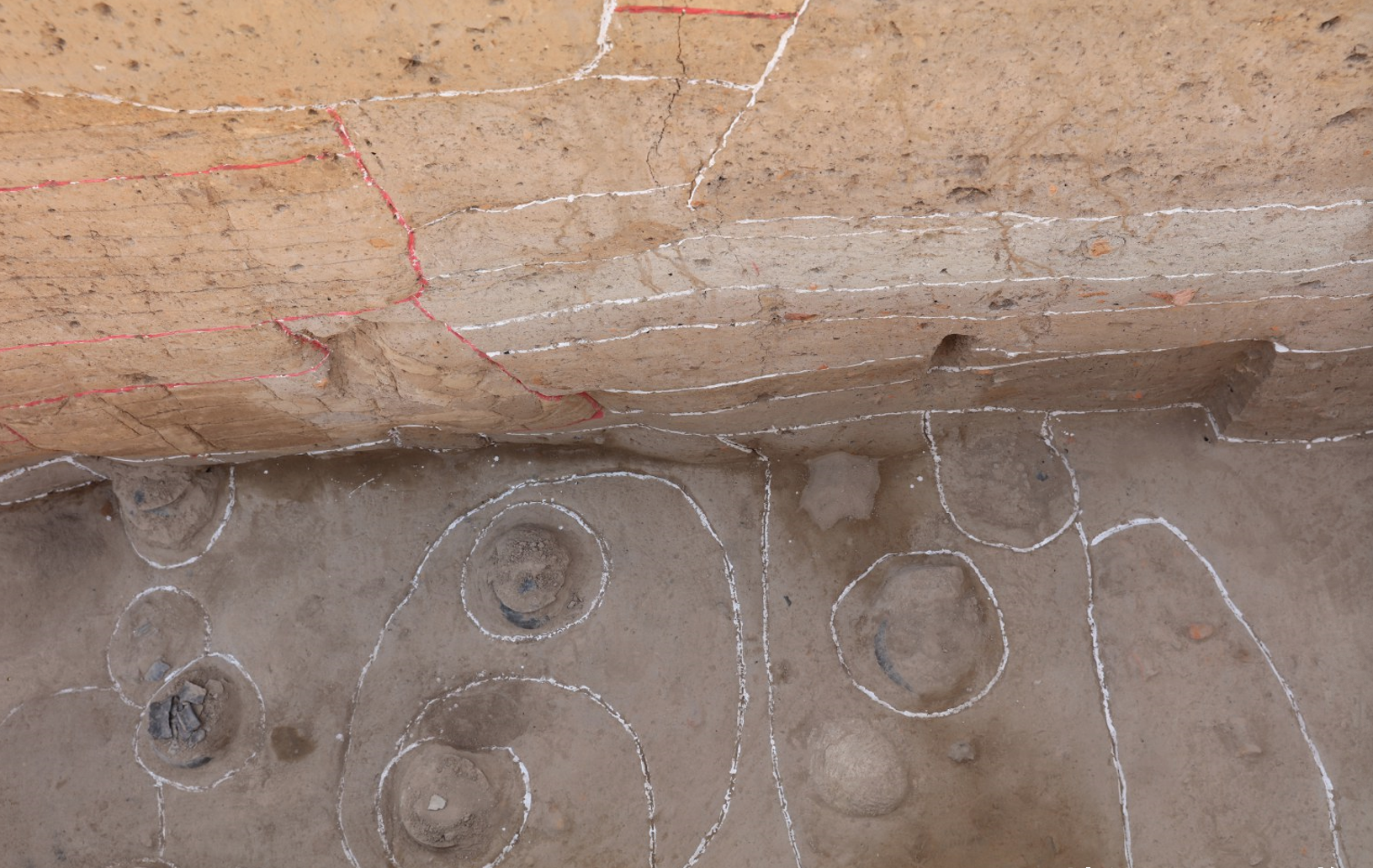 这是郑州大河村遗址部分墙体下暴露的器物。郑州市文物考古研究院供图