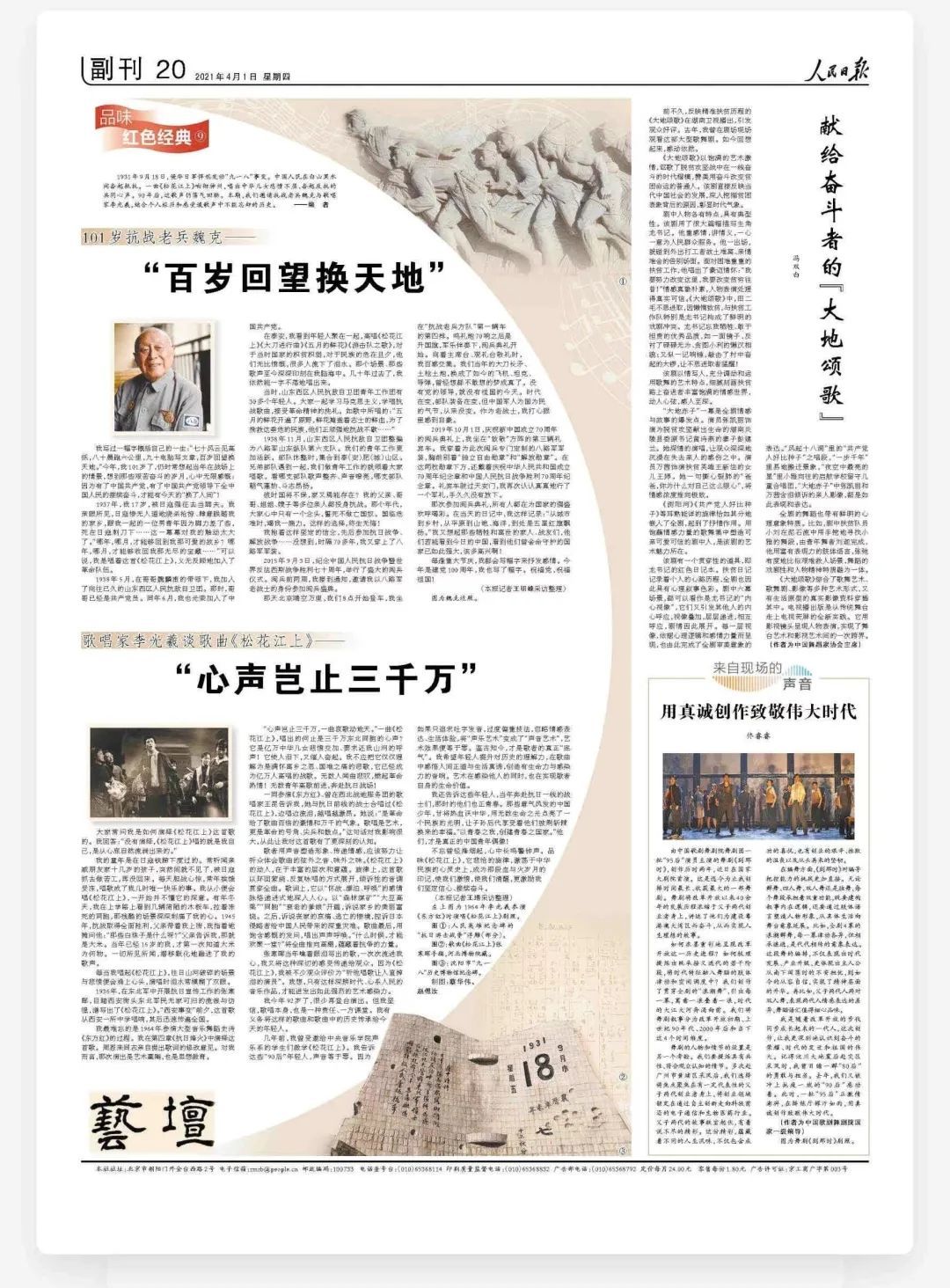 今天,“人民日报文艺”刊发记者追记文章,重新翻阅李光羲在人民日报发表的文章,以追忆李光羲先生——一位时代的歌者,一位人民的艺术家。