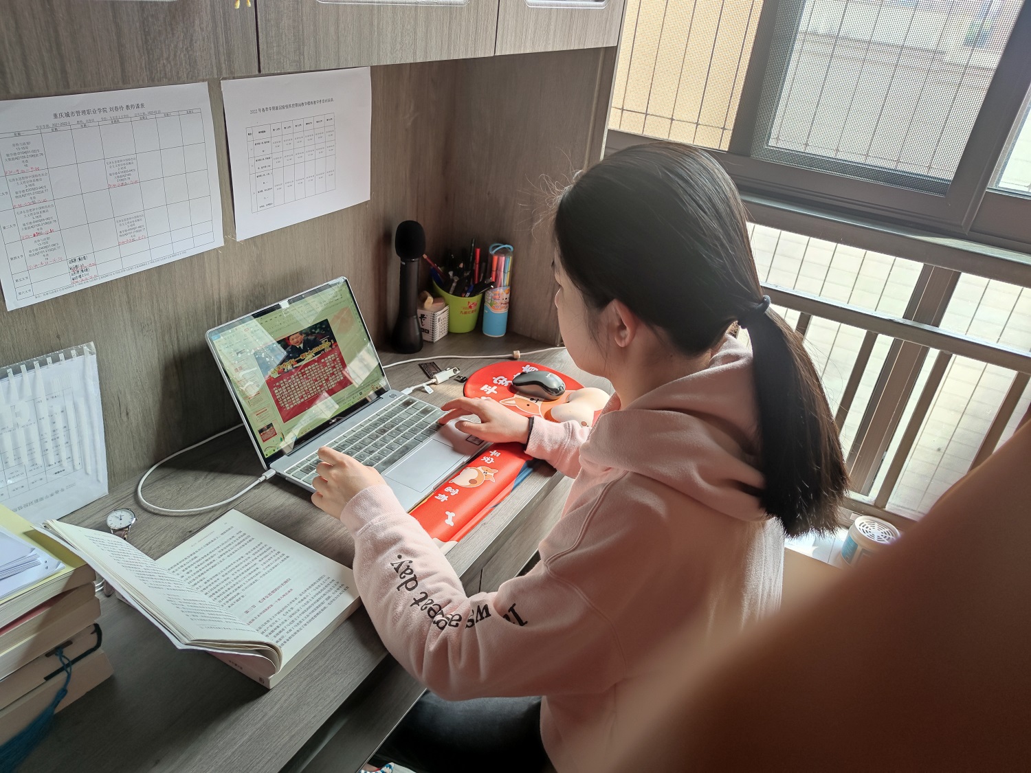 “上午是《大学英语》课,下午还有《旅游经济学》……”早上8点,重庆城市管理职业学院旅游管理专业学生曾旸洋准时打开电脑,在宿舍里开始一天的网课学习。