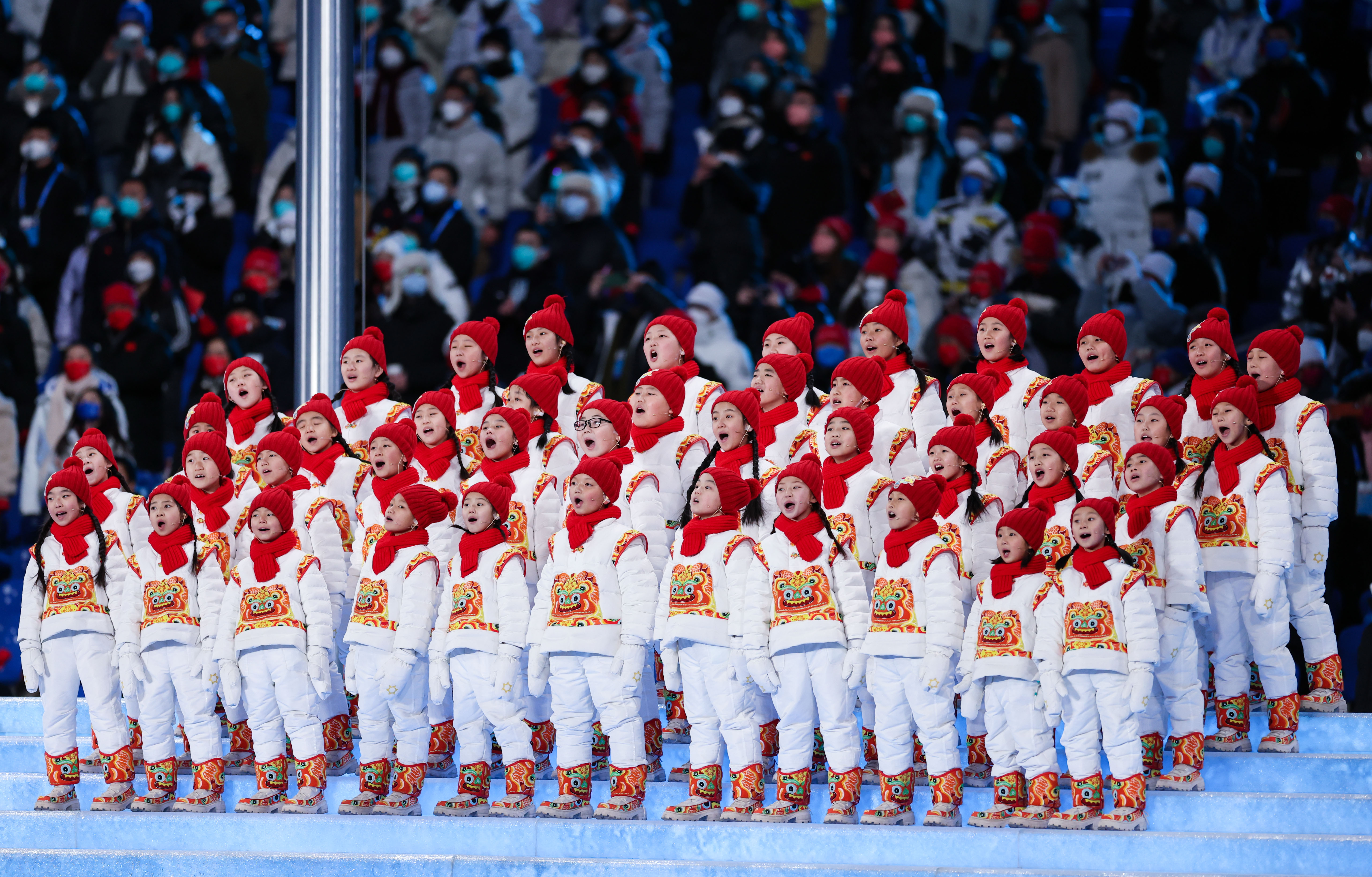 2月4日晚,第二十四届冬季奥林匹克运动会开幕式在北京国家体育场举行。这是“马兰花儿童合唱团”用希腊语在开幕式上歌唱。新华社记者曹灿摄