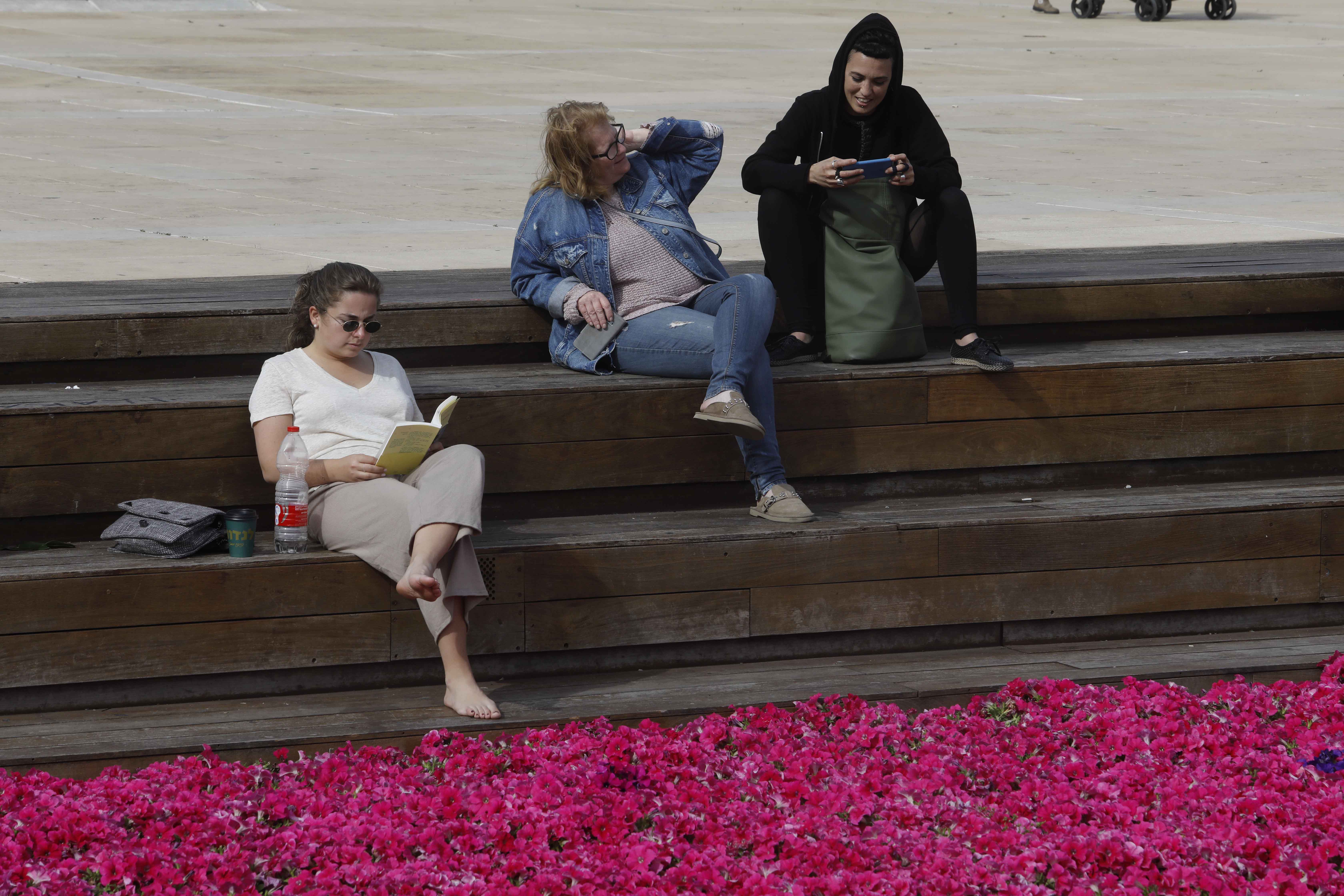 2021年4月23日,一名女子在以色列特拉维夫读书。(新华社发,吉尔·科恩·马根摄)
