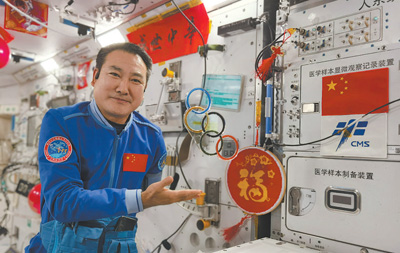 执行迄今时间最长一次太空飞行,神舟十三号航天员赶上了第一次在太空跨年,第一次在空间站过春节。在地面团队的精心保障下,航天员们除夕夜为人们送上来自太空的新年祝福,在空间站度过了年味十足、充实精彩的虎年春节。从太空出舱、“天宫课堂”开讲,到手控遥操作完成货运飞船与空间站组合体交会对接试验,从中国女航天员首次太空漫步,到3名航天员太空飞行累计超100天,太空“出差”期间,航天员们开展了一系列空间科学实验和技术试验,刷新了一个又一个中国航天纪录,为中国空间站正式建成打下坚实基础。