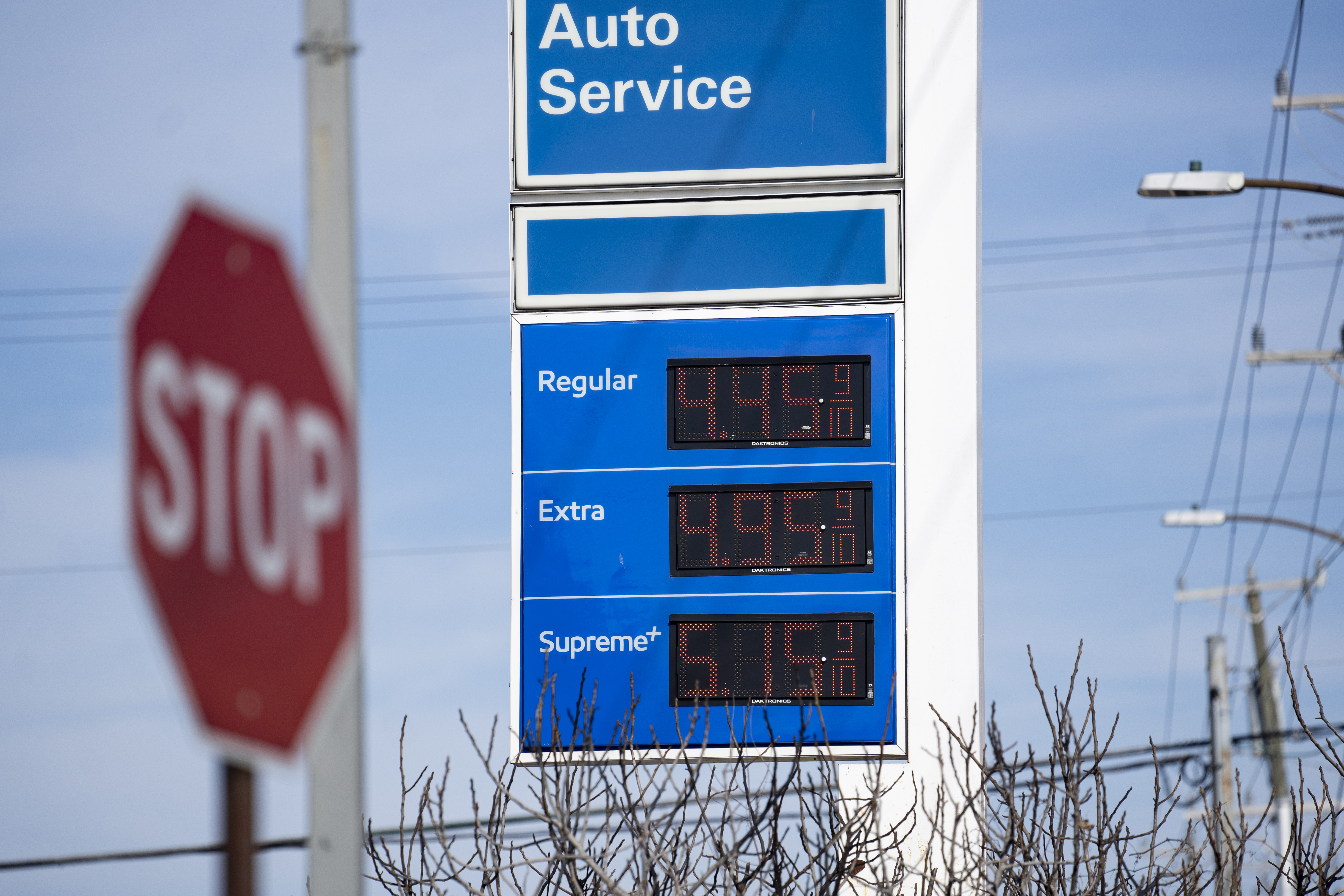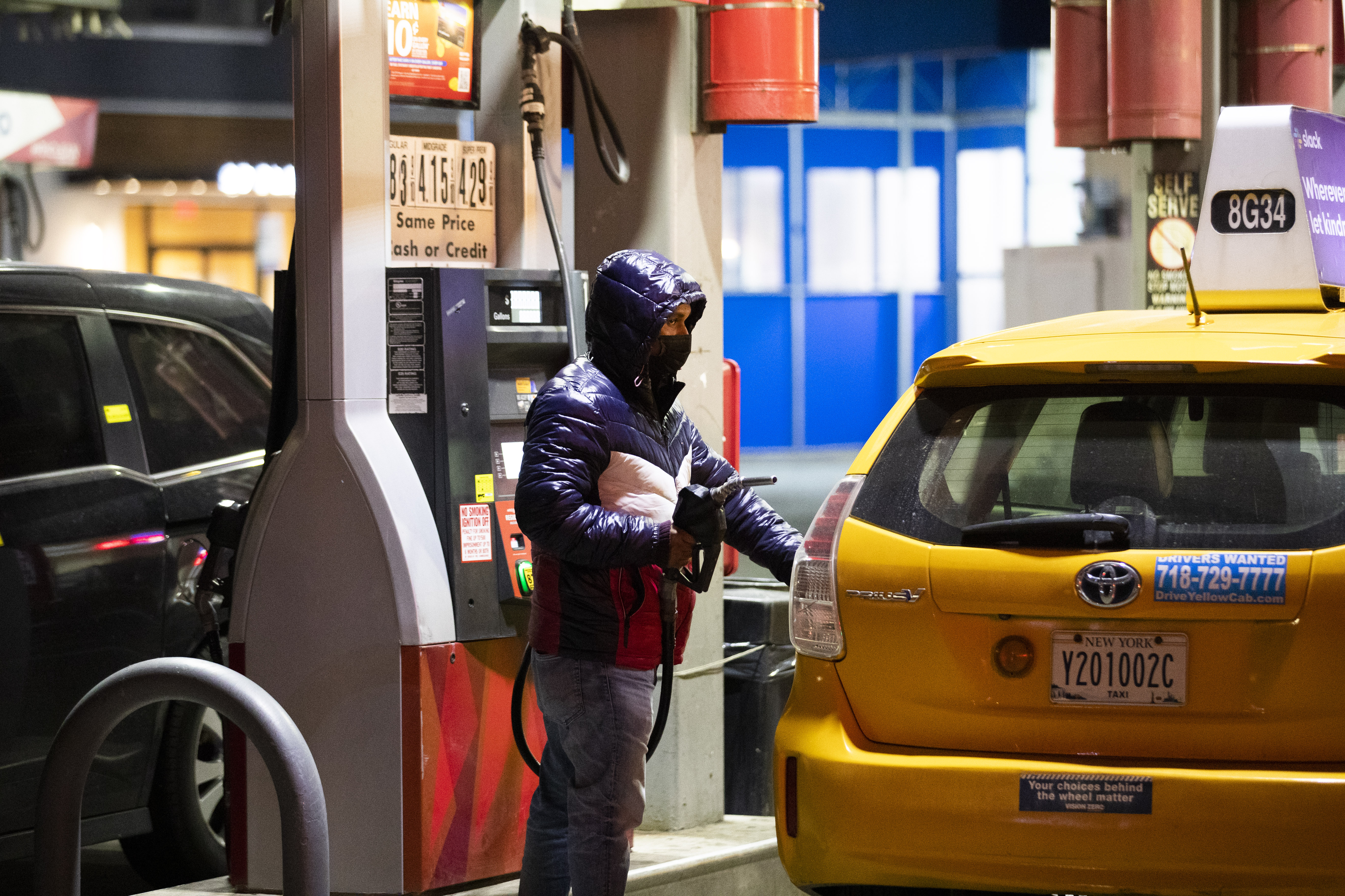 2月25日,一名男子在美国纽约一家加油站加油。新华社记者王迎摄