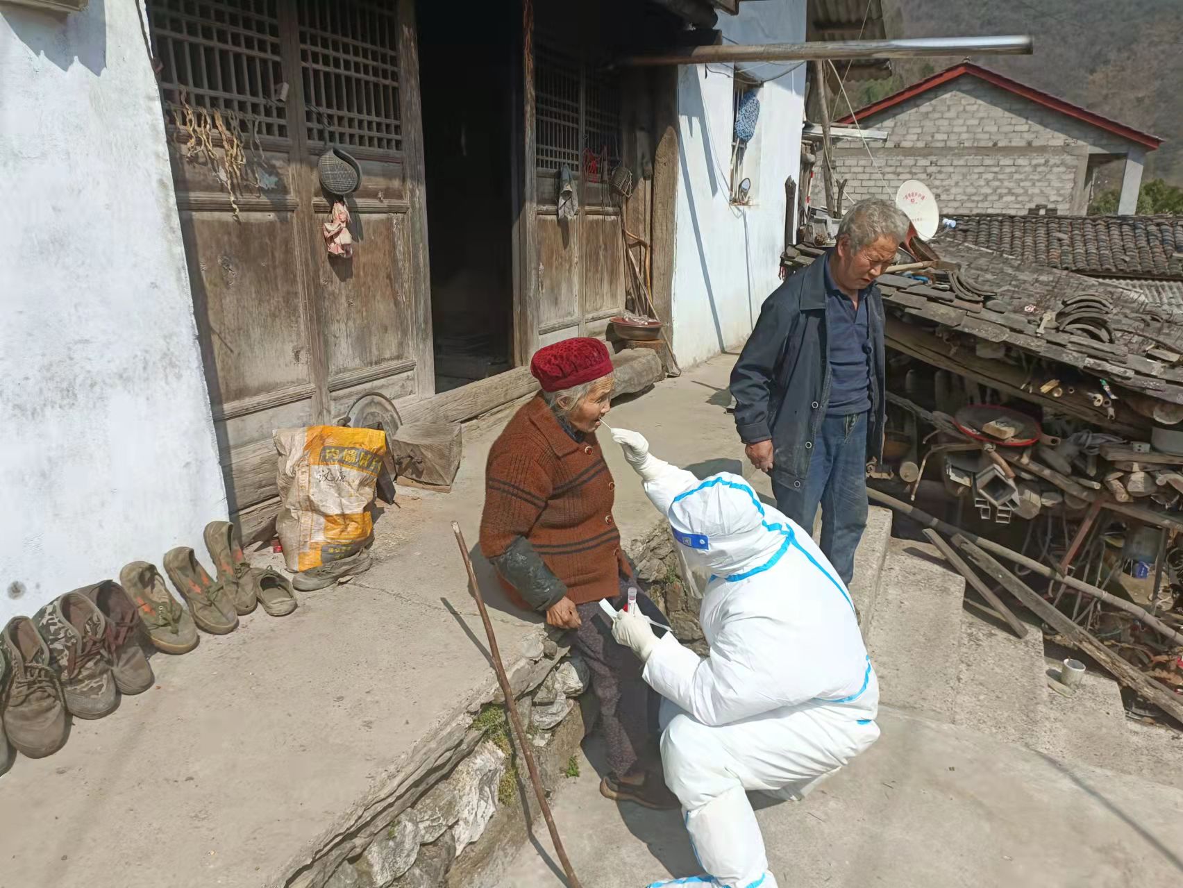 8个村民小组,留守人员380人左右,居住极为分散……每天上午八点,刘佳准备好医疗箱和采样管,进村为村民采样。“村民住得分散,能过来集中采样的人并不多。”刘佳说,“很多村民住在山上,下来一趟要走很远,所以一般都是村干部骑着摩托车,捎上我,挨家挨户上门去采。”