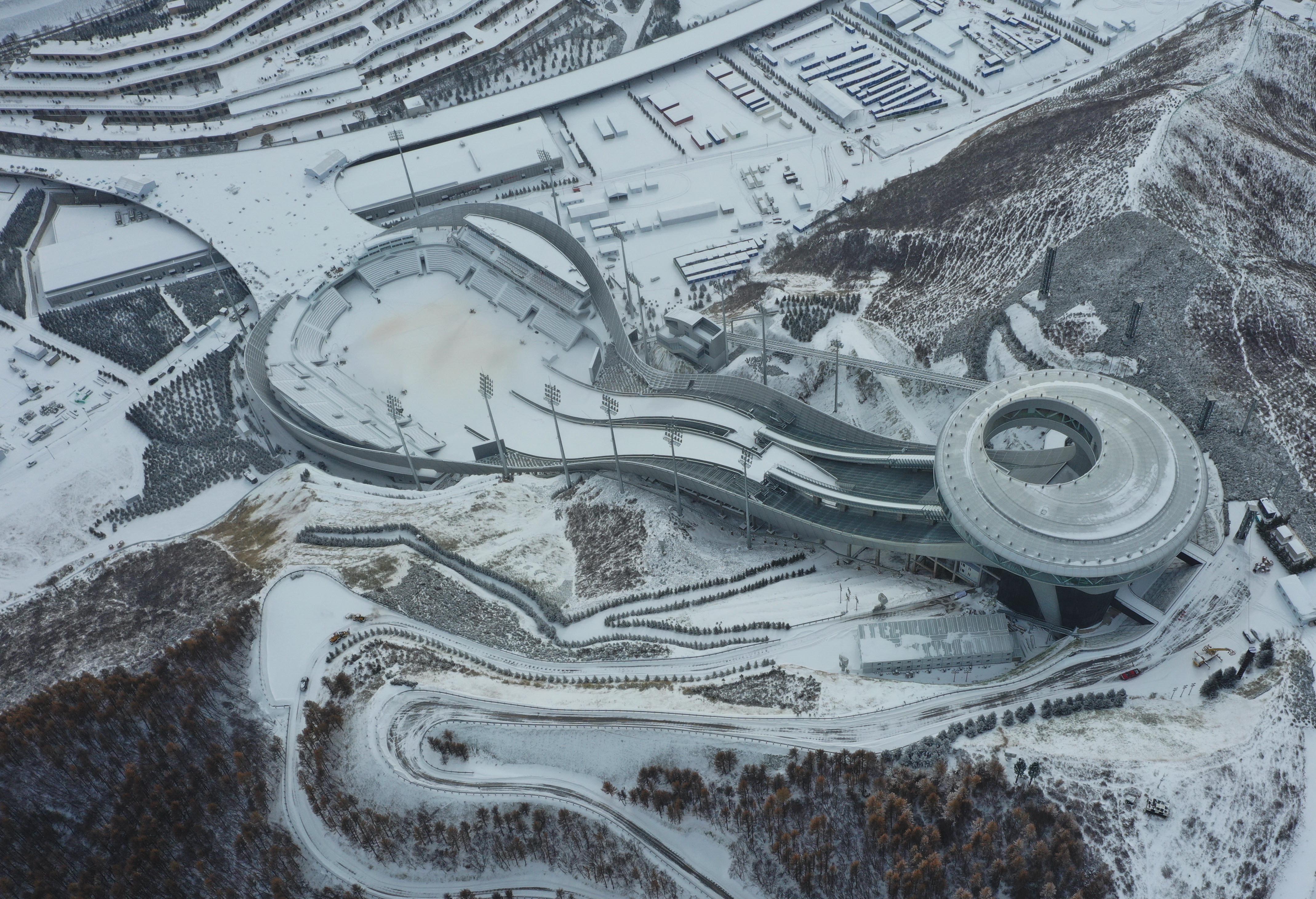 新华社照片,北京,2022年3月16日 (新华全媒头条·图文互动)(6)京张大地的奥运回响 这是国家跳台滑雪中心“雪如意”(无人机照片,2021年11月7日摄)。 (配本社同题文字稿) 新华社记者 杨世尧 摄