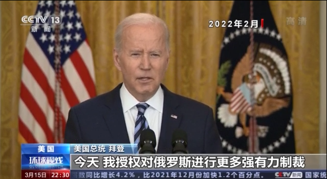 美国总统 拜登:今天,我授权对俄进行更多强有力制裁,并限制更多商品出口到俄罗斯。