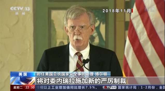 时任美国总统国家安全事务助理博尔顿:今天,我骄傲地宣布,特朗普总统签署了一项新的行政令,将对委内瑞拉施加新制裁。