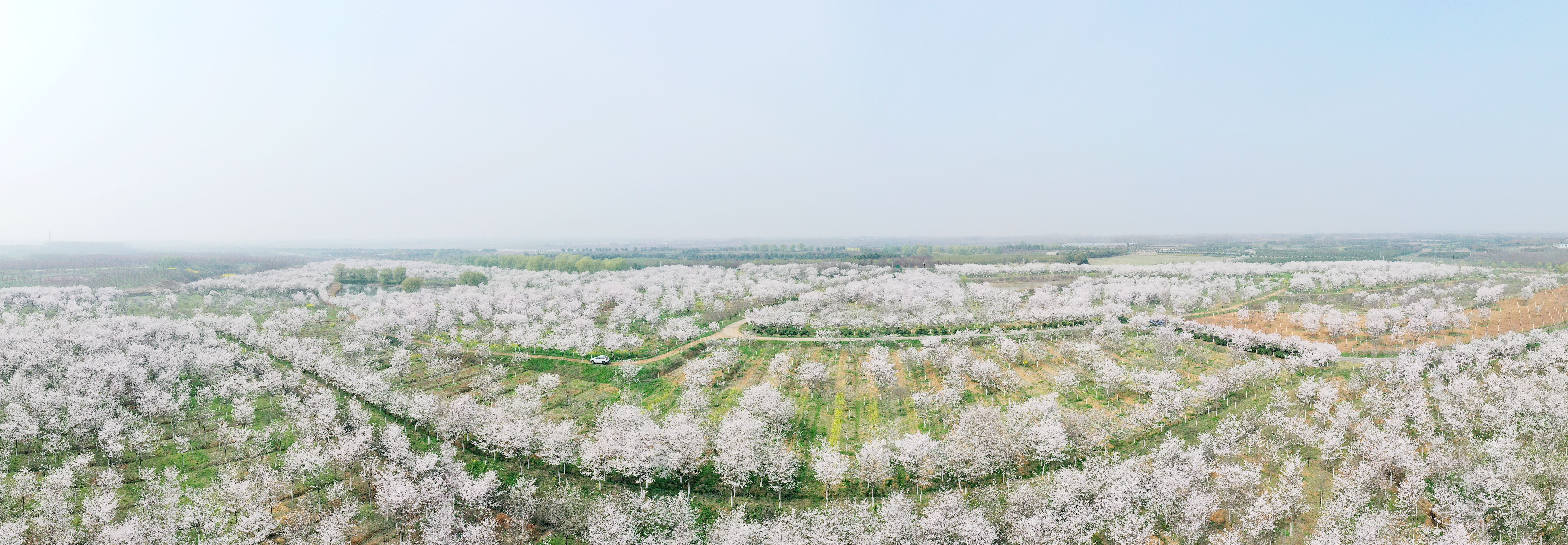 新华社照片,合肥,2022年3月16日 大地着春装 樱花伴春开 这是3月16日在安徽省合肥市蜀山区小庙镇一个农场拍摄的樱花(无人机照片)。 连日来,随着气温升高,我国多地的樱花次第绽放,呈现出一片生机勃勃的春日景象。 新华社发(陈三虎 摄)