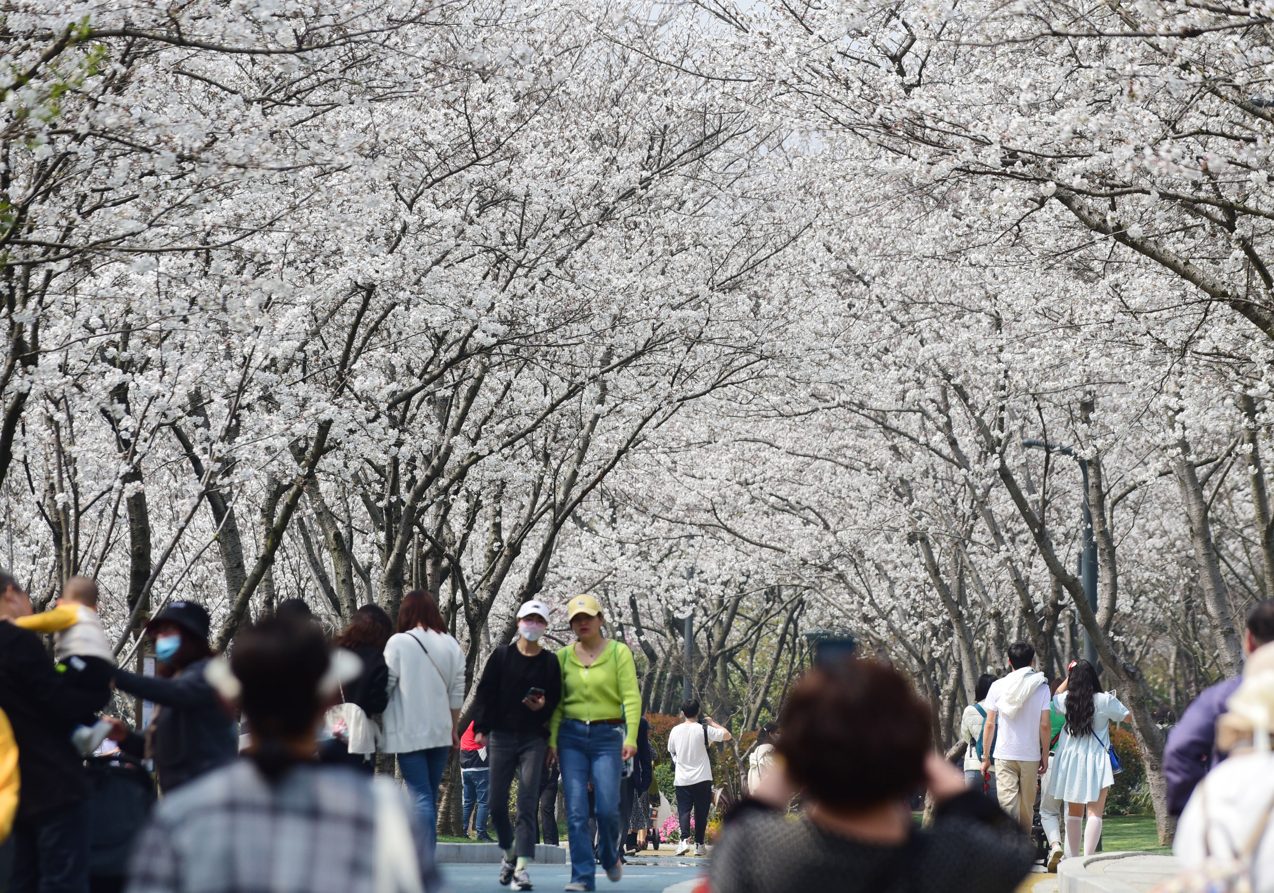 新华社照片,无锡(江苏),2022年3月16日 大地着春装 樱花伴春开 3月16日,游人在江苏省无锡金匮公园赏花游玩。 连日来,随着气温升高,我国多地的樱花次第绽放,呈现出一片生机勃勃的春日景象。 新华社发(还月亮 摄)