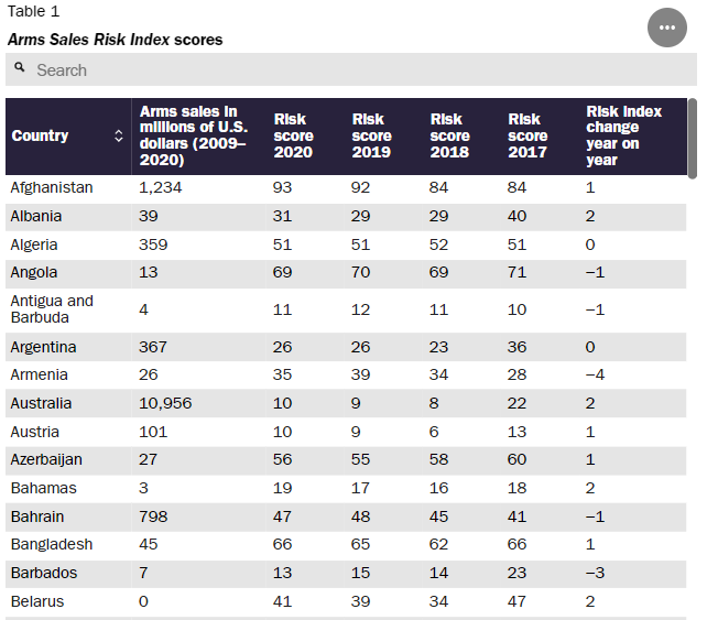 △美国军售风险指数不完全统计表 图片来源:卡托研究所