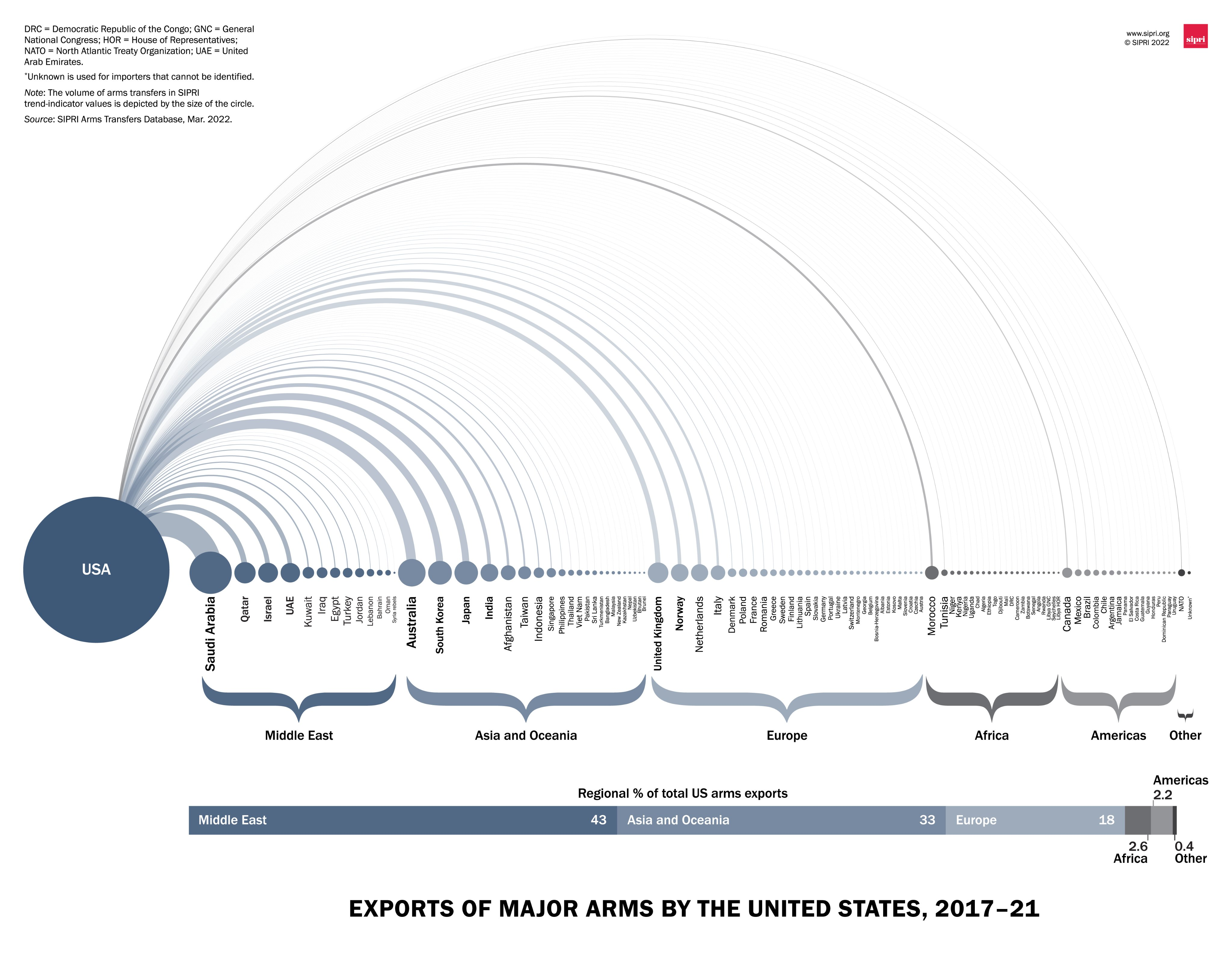 △2017年-2021年美国主要武器出口情况图片来源:SIPRI