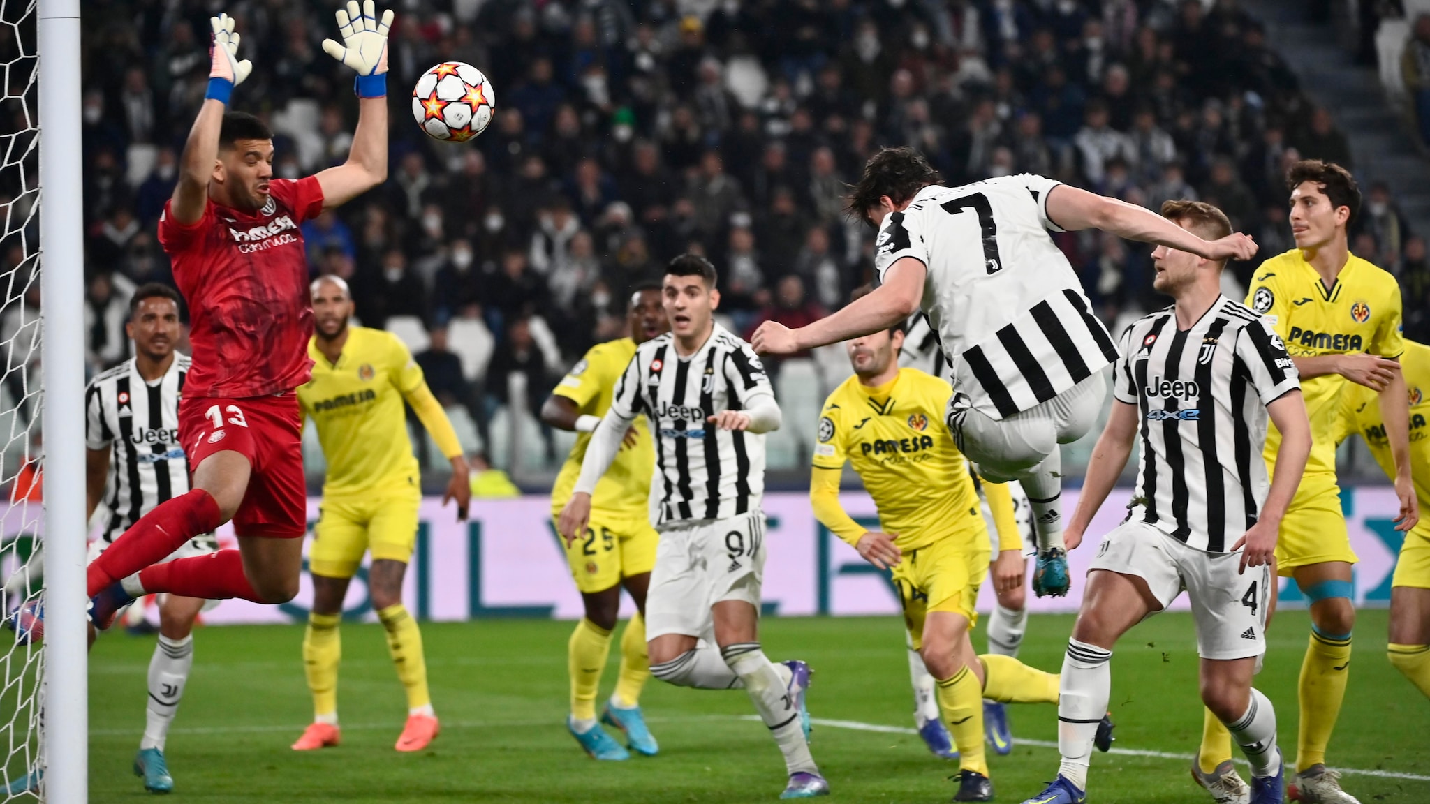 易边再战,第59分钟,尤文球员拉比奥禁区外突施冷箭,再次被发挥出色的鲁利拿下。相比主队,比利亚雷亚尔一直没有一次射门在门框范围内,但是在第78分钟,尤文后卫鲁加尼禁区内踢倒科克兰送点,莫雷诺为客队主罚命中。对于尤文来说,场上状况从此急转直下。第85分钟“黄潜艇”扩大领先优势,角球开出,无人盯防的保·托雷斯门前轻松将球打进。补时期间,尤文因德利赫特手球再次送点,丹朱马一蹴而就,最终比利亚雷亚尔3:0获得胜利,以总比分4:1晋级八强。