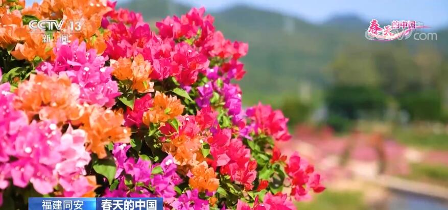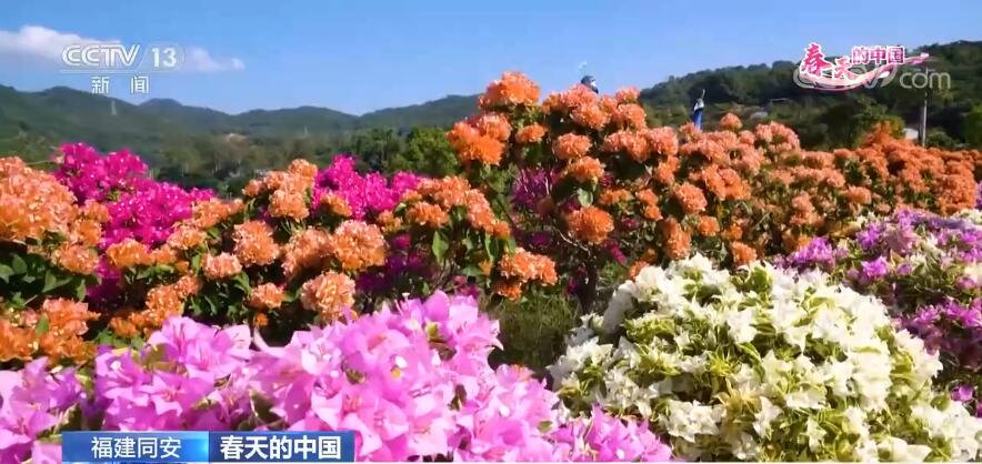 现在,我们来到福建厦门。同安区 古坑村的近千亩三角梅正在怒放,这里的三角梅有400多个品种,其中,“同安红”三角梅获得了国家地理标志。当地利用三角梅苗木和盆景造型资源,推出生态农业观光游,每年能供应市场商品苗100多万株,每亩可为农户带来3.5万元的收入。而在古坑村民居的房前屋后,花团锦簇的三角梅与白墙红瓦的古厝交相辉映,田园风光美不胜收。