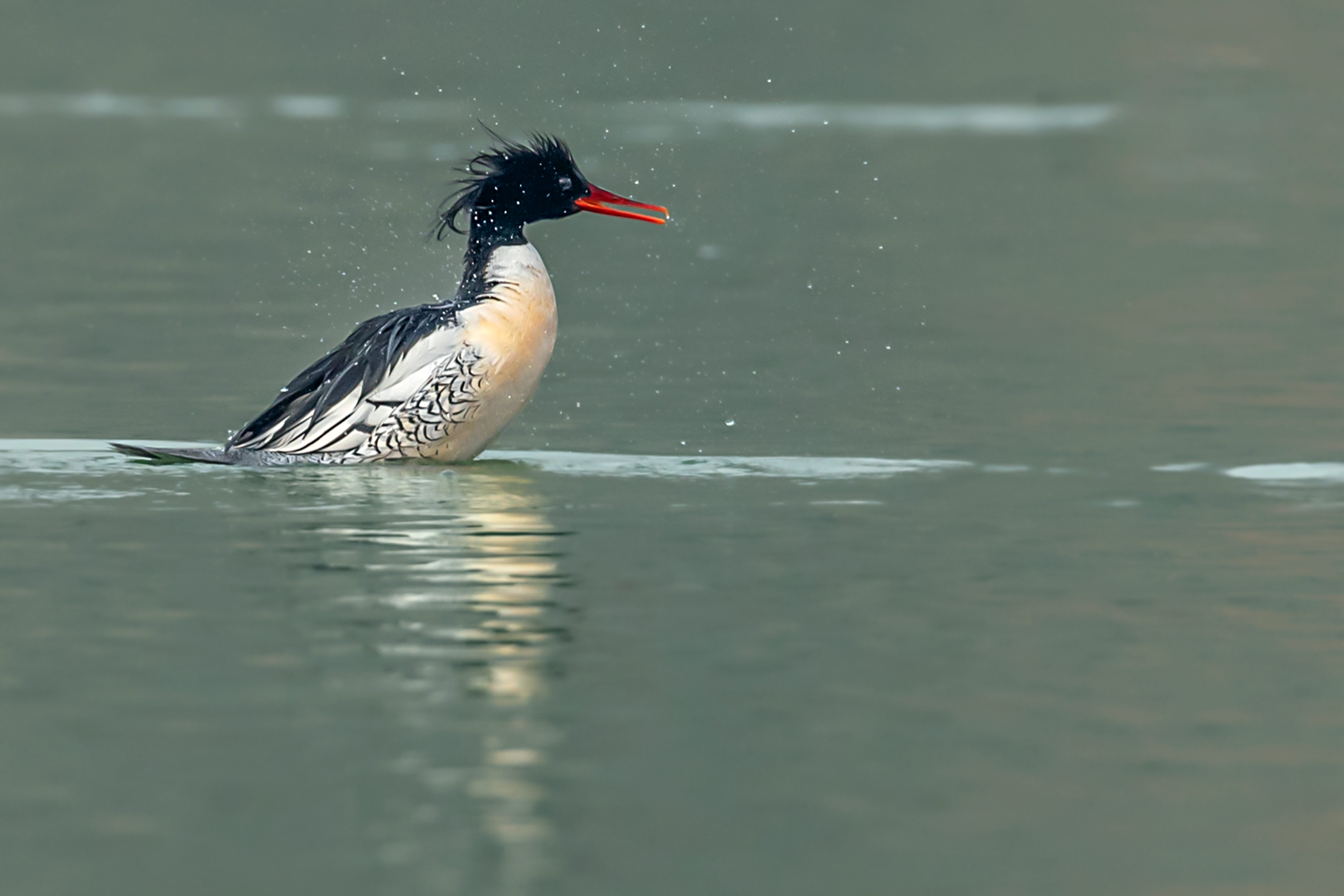 在平谷西峪水库拍摄到的中华秋沙鸭。(平谷区园林绿化局供图)