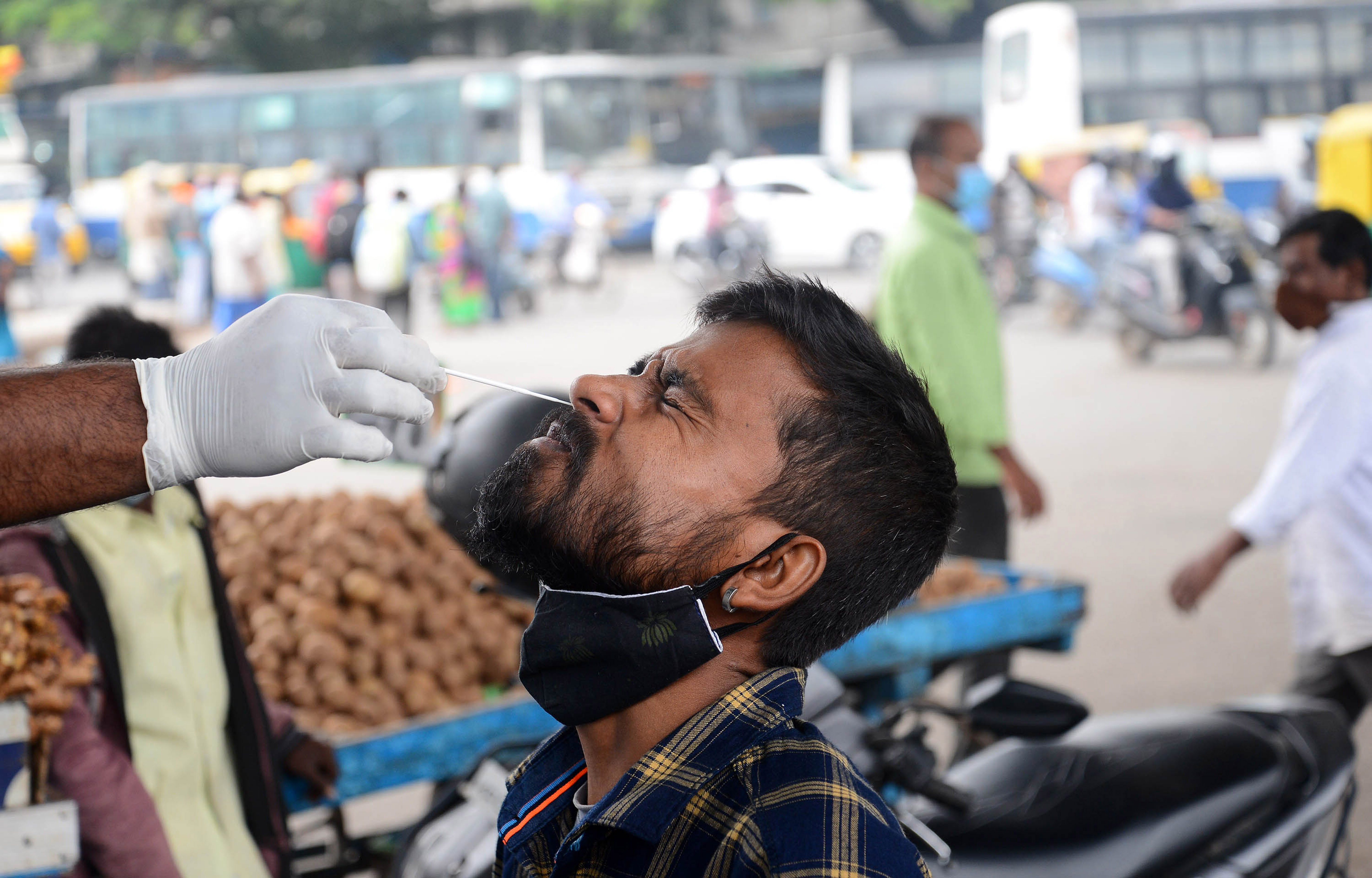 2021年12月2日,一名男子在印度班加罗尔接受新冠检测。新华社发