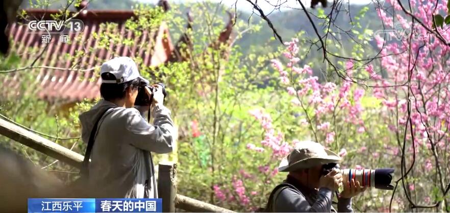 镜头转向江西乐平涌山镇的鸡公山。这里的上千亩野生紫荆花从山脚下盛开,蔓延至山顶,岩石缝隙、悬崖峭壁都姹紫嫣红,绽放着它们俏丽的身姿。迷人的景致吸引着游客和摄影爱好者,沿着山道前来探访野生紫荆花。近年来,当地全面强化封山育林措施,禁止砍伐开荒、炸山采石,野生紫荆花自在生长、成片成林。