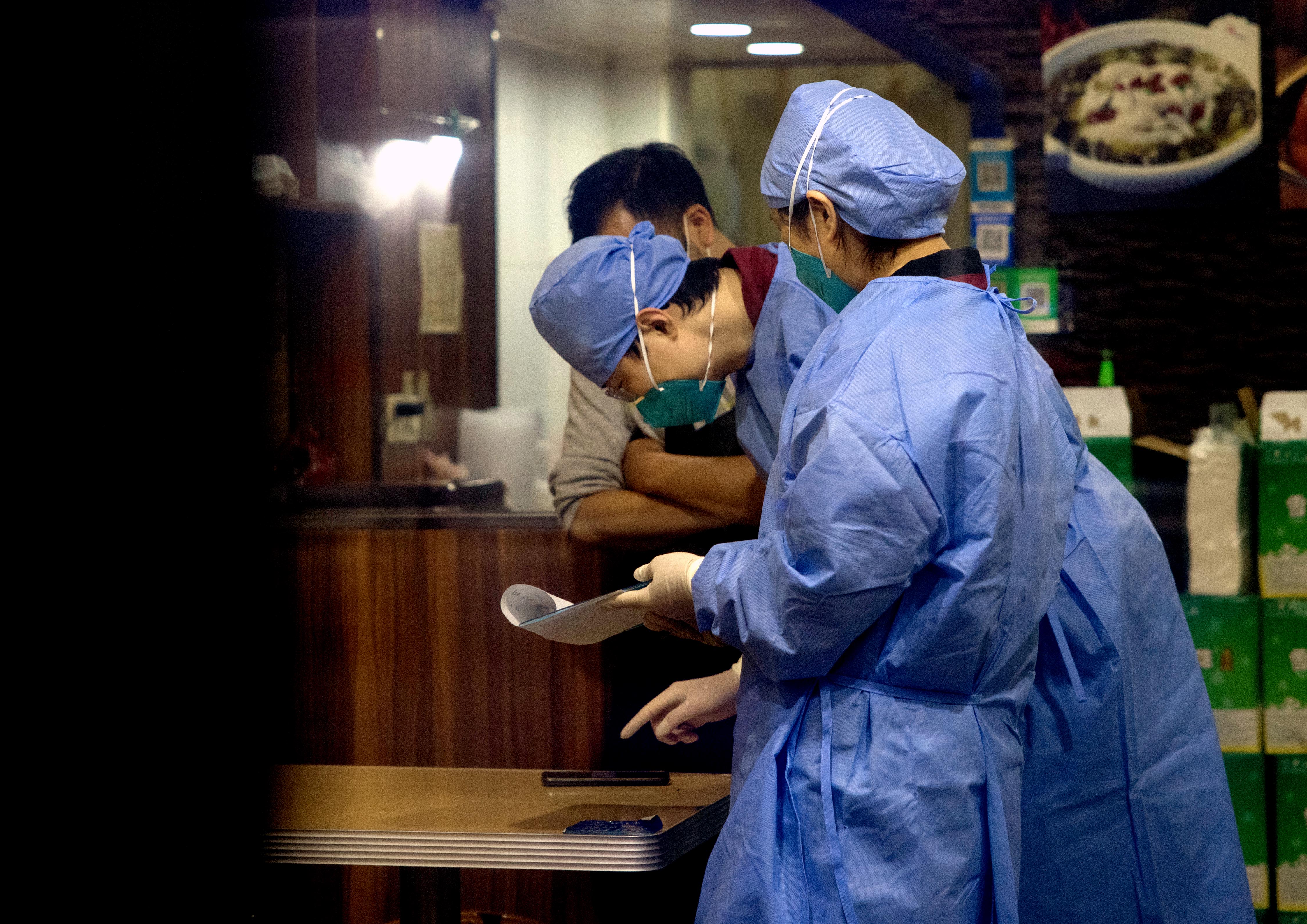 新华社照片,上海,2022年3月17日 上海:他们在深夜与病毒“赛跑” 3月17日凌晨,流调人员在相关场所进行排摸。 近日,上海新冠肺炎疫情防控工作处于关键阶段。青浦区疾控中心工作人员迅速应战,与区卫生健康系统抗疫一线医务人员一起,组成60余人的流调队伍,分成8个流调小组,24小时待命。他们通过大数据信息等方式排查核酸检测异常人员活动轨迹,分析感染途径和传播链,即刻前往重点场所进行轨迹排查、现场排摸、环境取样、转运送检,通宵达旦与病毒“赛跑”,全力阻击疫情。 新华社记者 刘颖 摄