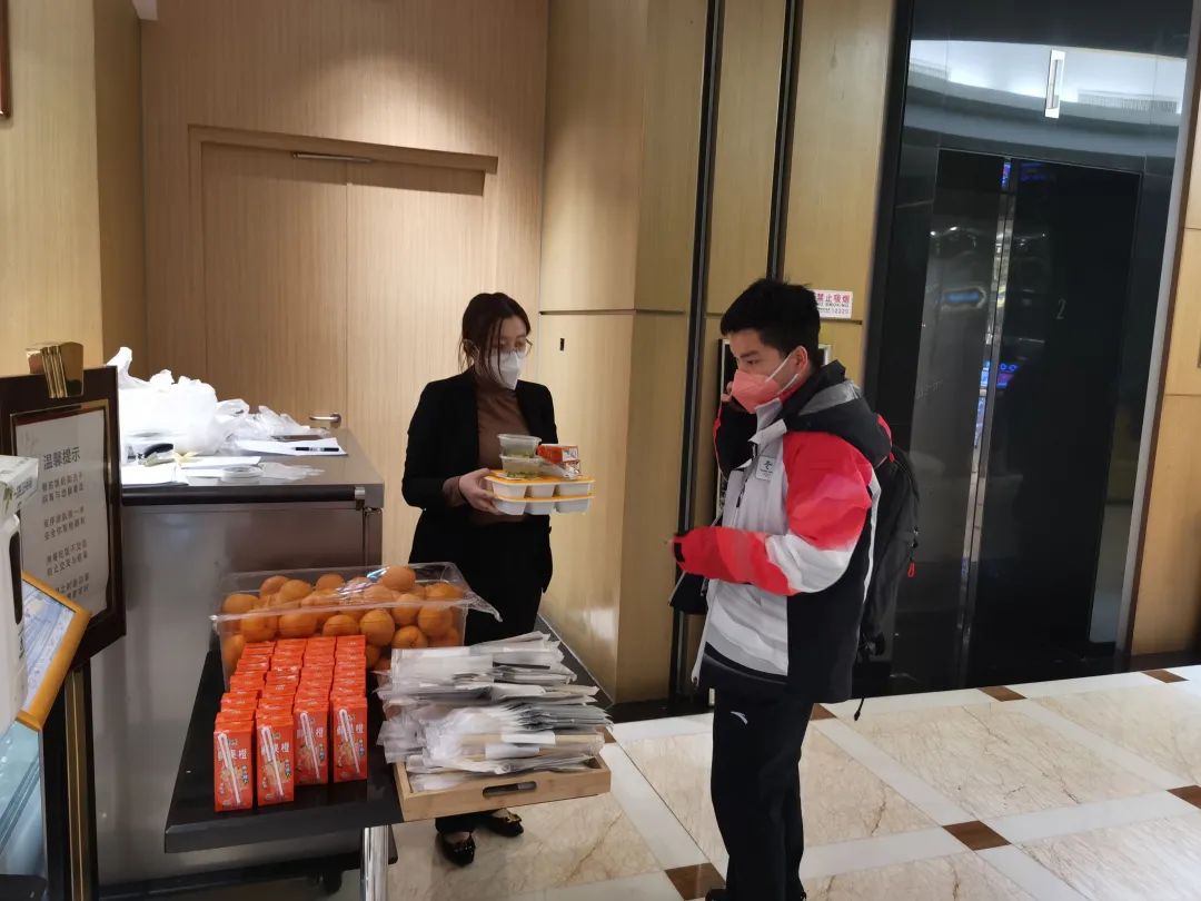 冬奥签约酒店北京金陵饭店为客人分发食品 北京金陵饭店供图