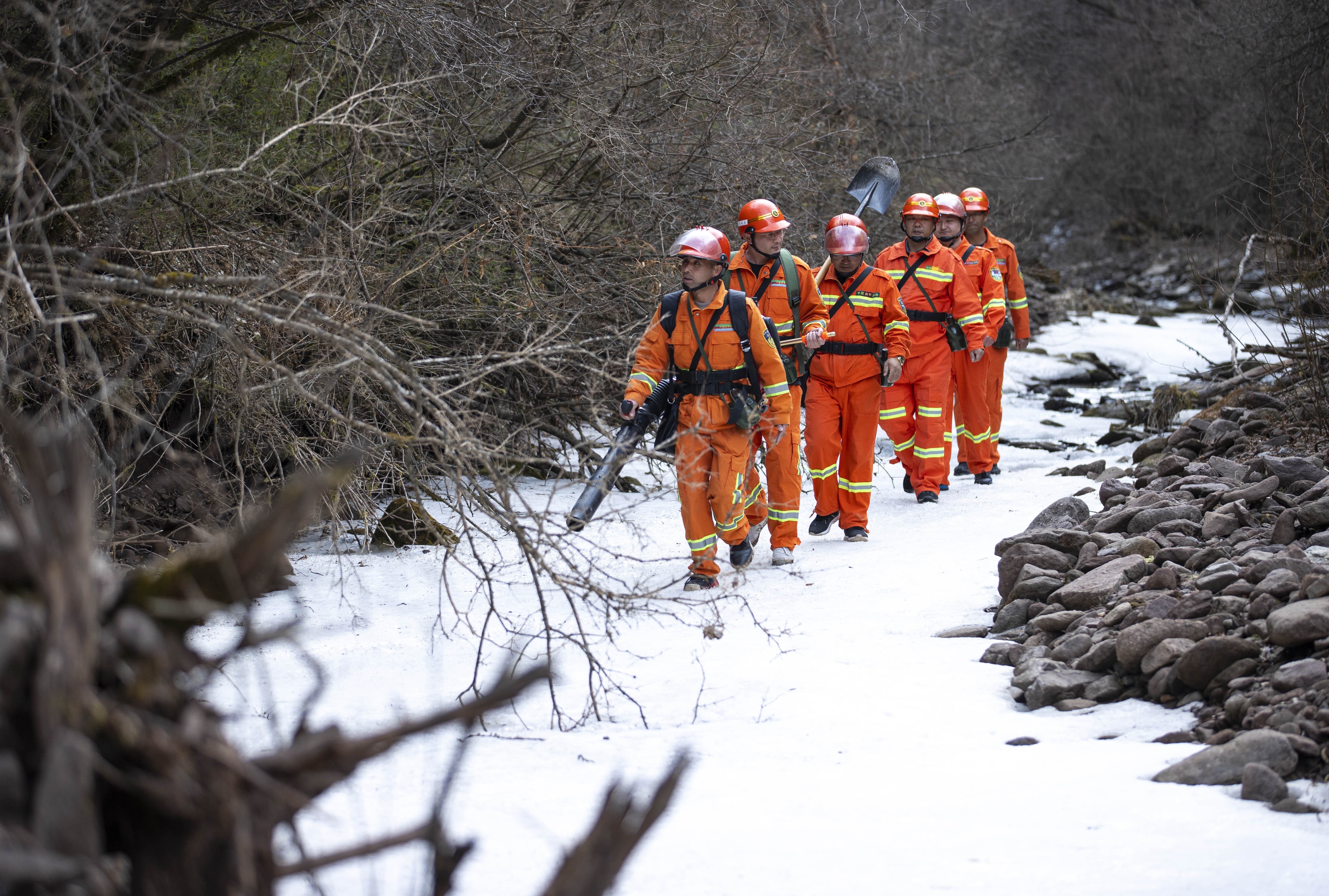 新华社照片,固原(宁夏),2022年3月18日 六盘山林区巡护忙 筑牢春季“防火墙” 宁夏固原市六盘山林业局二龙河国有林场的工作人员在所辖林区进行防火巡护巡查(3月17日摄)。 入春以来,宁夏固原市气温回升,六盘山地区森林火险等级较高。固原市六盘山林业局加强对六盘山林区的巡护巡查力度,筑牢春季“防火墙”。 新华社记者 杨植森 摄