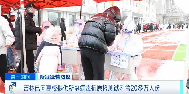 记者 刘悦欣:目前吉林省疫情形式依旧严峻,首先是继续强化学校防控工作,制定高校全员新冠病毒抗原检测实施方案,确保抗原检测全覆盖,目前已向高校提供新冠病毒抗原检测试剂盒20多万人份。