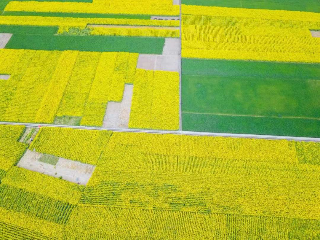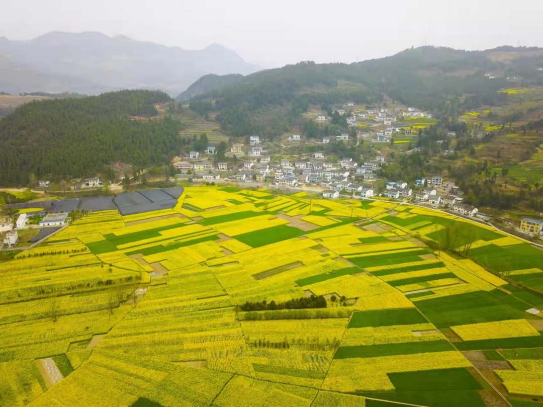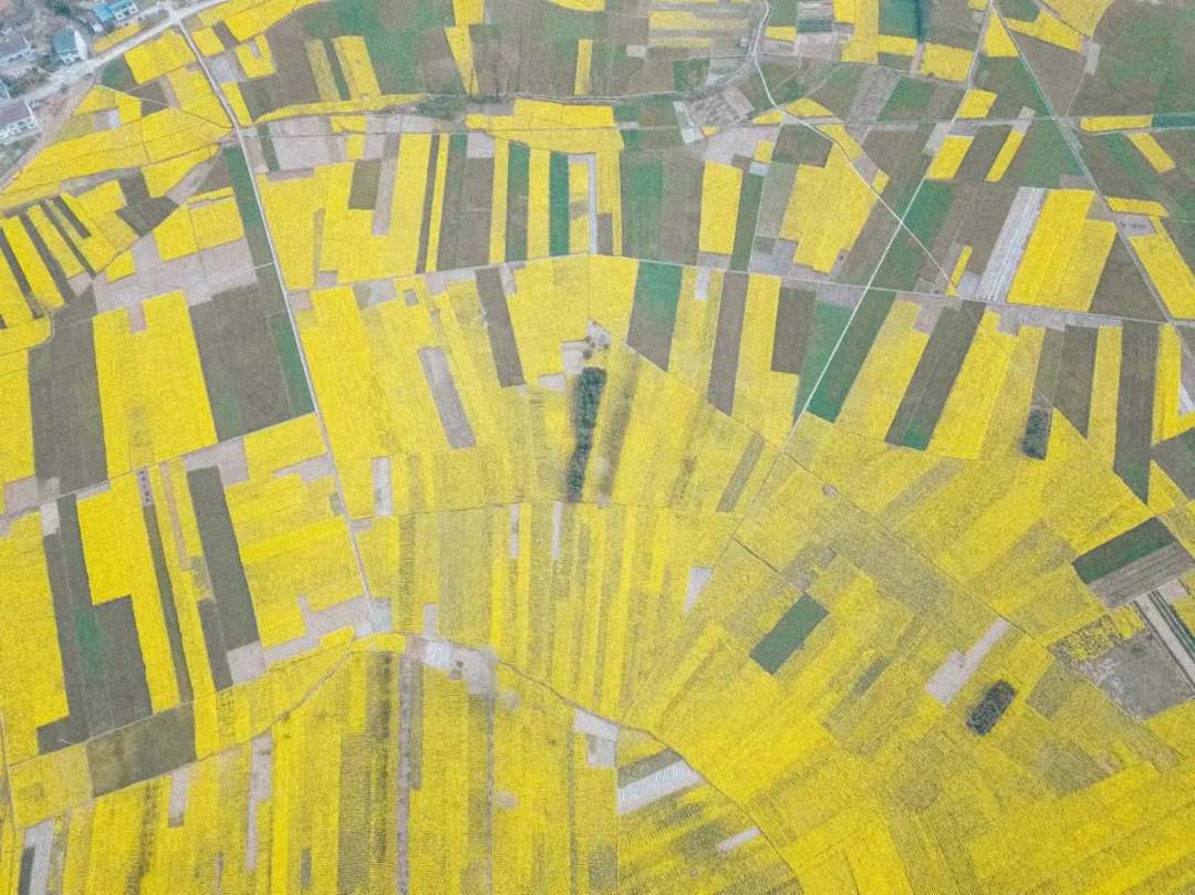 春到田园无限美。每年三月,是广元市朝天区羊木镇近万亩油菜花的盛开期,大片油菜花竞相绽放,空中俯瞰这里金黄的油菜花、阡陌纵横的农田与错落有致的农居,构成一幅幅秀美的田园画卷。(刘慷)