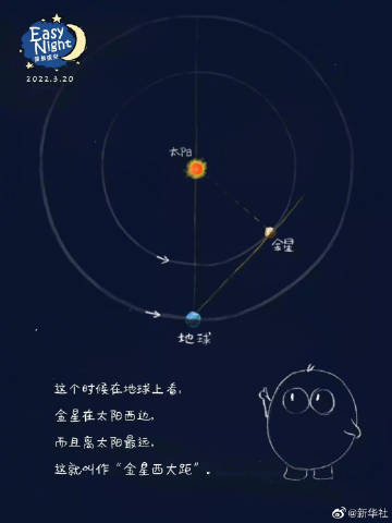 【#观测启明星迎良机#!#20日天宇上演金星西大距#】3月20日,天宇将上演金星西大距,当日清晨,以“启明星”姿态现身的金星会在东南方天空熠熠生辉,肉眼清晰可见。感兴趣的公众不妨早起,看看这颗“夜空中最亮的星”是如何开启黎明的。