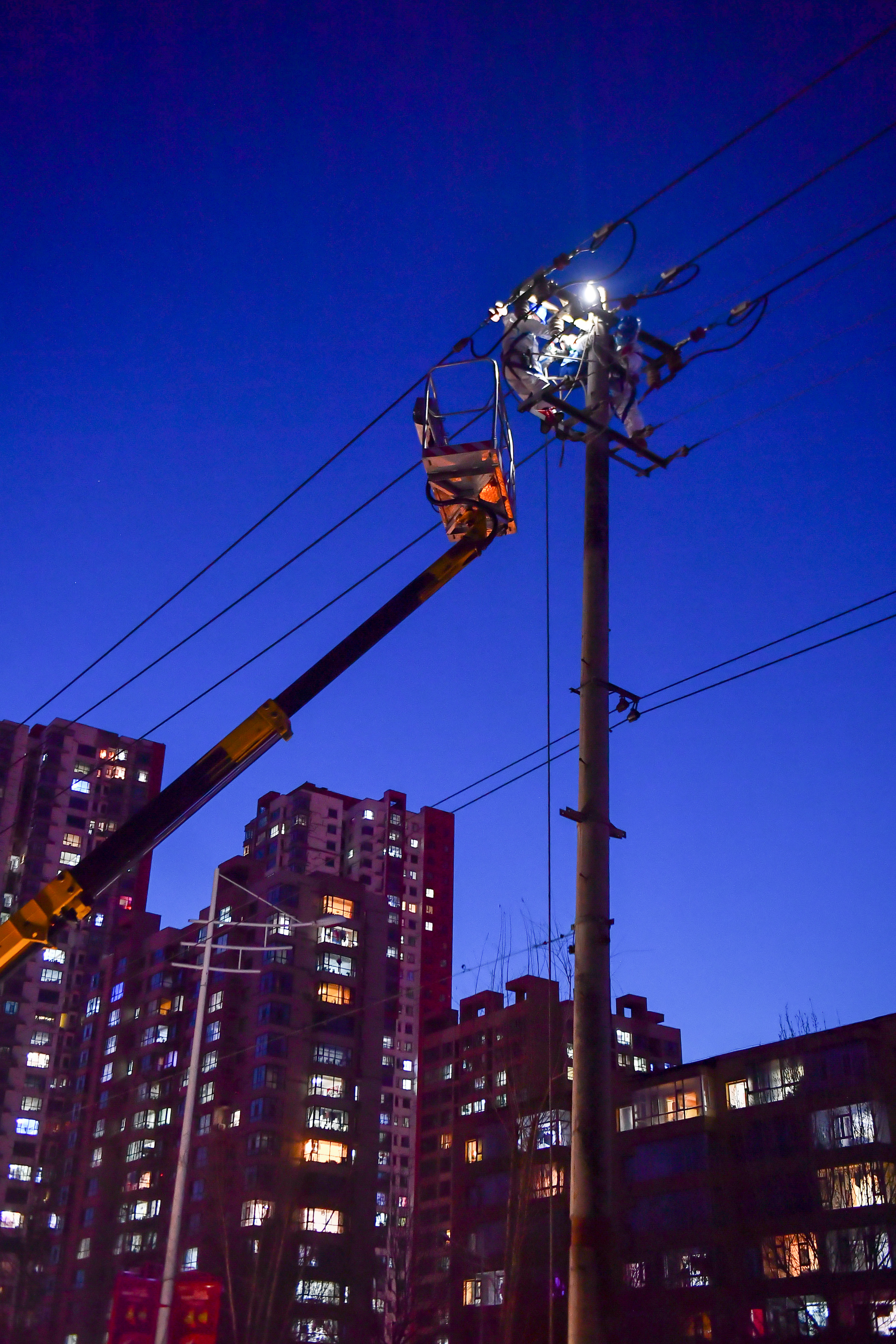 新华社照片,吉林市(吉林省),2022年3月18日 坚守抗疫一线的夜晚 3月17日晚,国网吉林供电公司工作人员抢修配电线路。 本轮疫情发生以来,吉林省吉林市多个行业的工作人员坚守岗位,不舍昼夜,奋战在抗疫一线,保障社会稳定运转。 新华社记者 张楠 摄