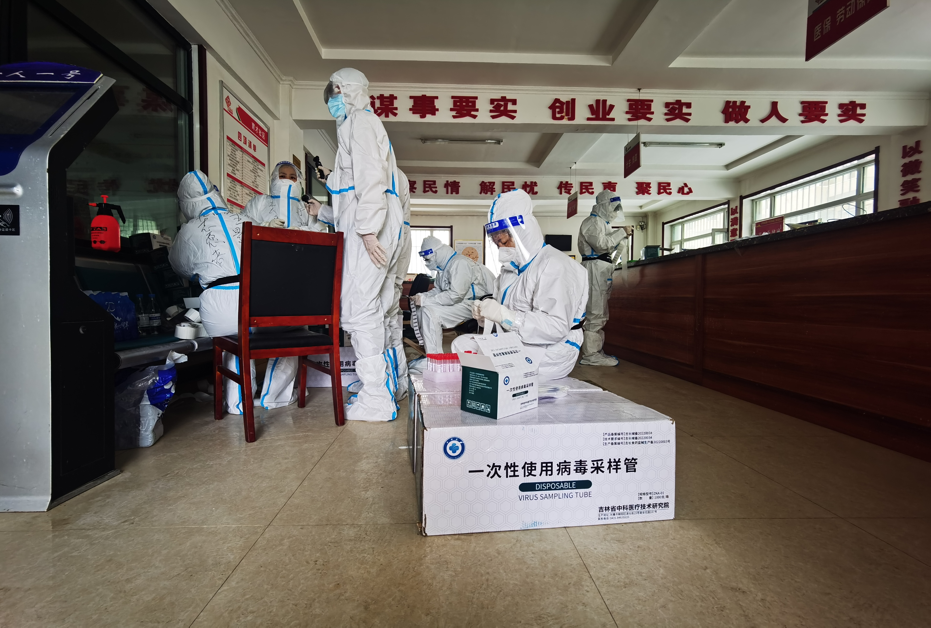 新华社照片,长春,2022年3月18日 长春市九台区开启新一轮核酸检测 3月18日,长春市九台区九台街道育才社区的工作人员、志愿者在整理核酸检测试剂,准备上门为居民进行核酸检测。 当日,吉林省长春市九台区开启新一轮核酸检测。据介绍,本轮检测采取上门检测与发放抗原检测试剂相结合的方式,并在多个环节进行优化,使居民核酸检测进一步“提速”。 新华社记者 张博宇摄