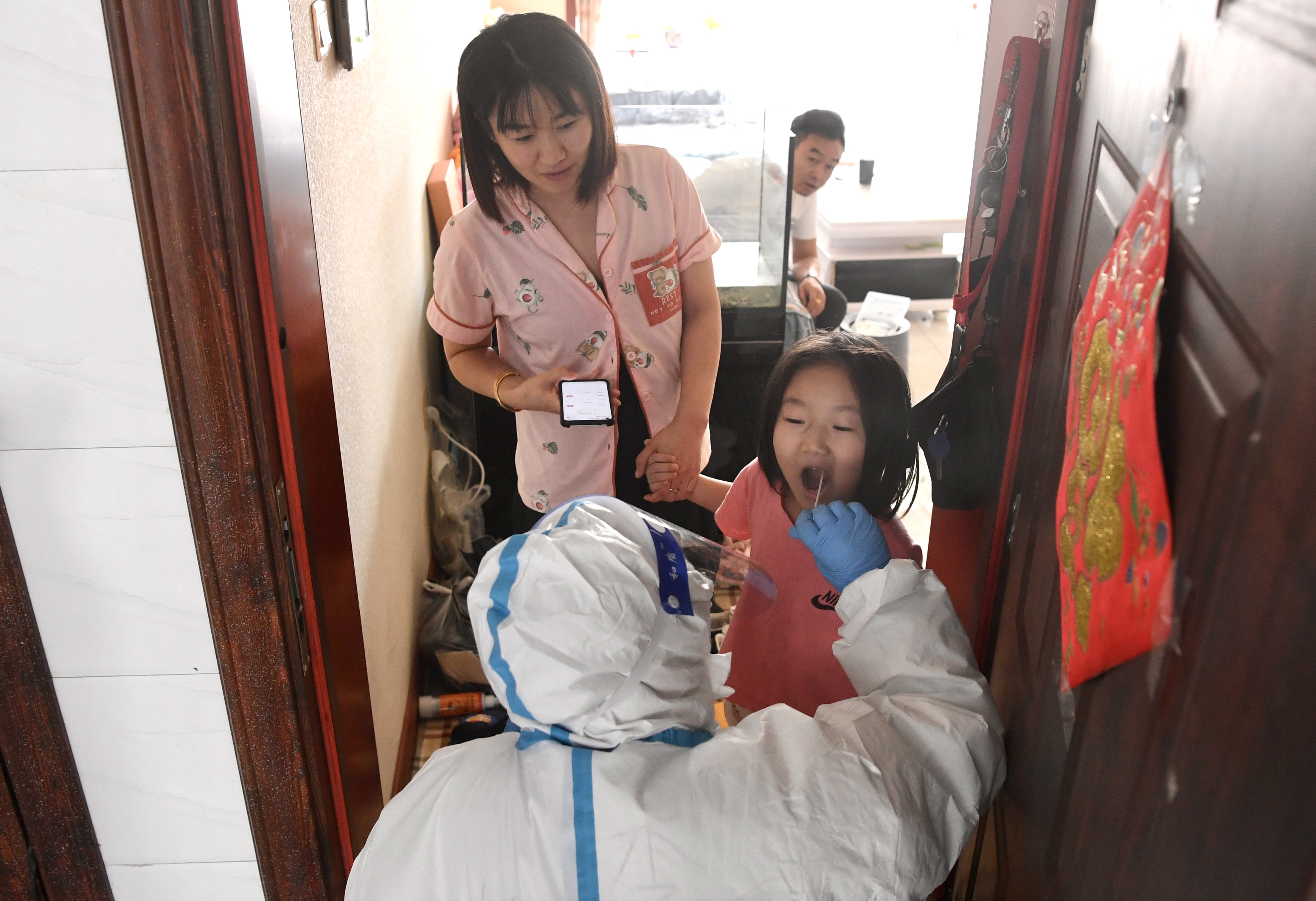 新华社照片,长春,2022年3月18日 长春市九台区开启新一轮核酸检测 3月18日,在长春市九台区营城街道东明豪庭小区,工作人员为居民进行核酸检测采样。 当日,吉林省长春市九台区开启新一轮核酸检测。据介绍,本轮检测采取上门检测与发放抗原检测试剂相结合的方式,并在多个环节进行优化,使居民核酸检测进一步“提速”。 新华社记者 张博宇摄