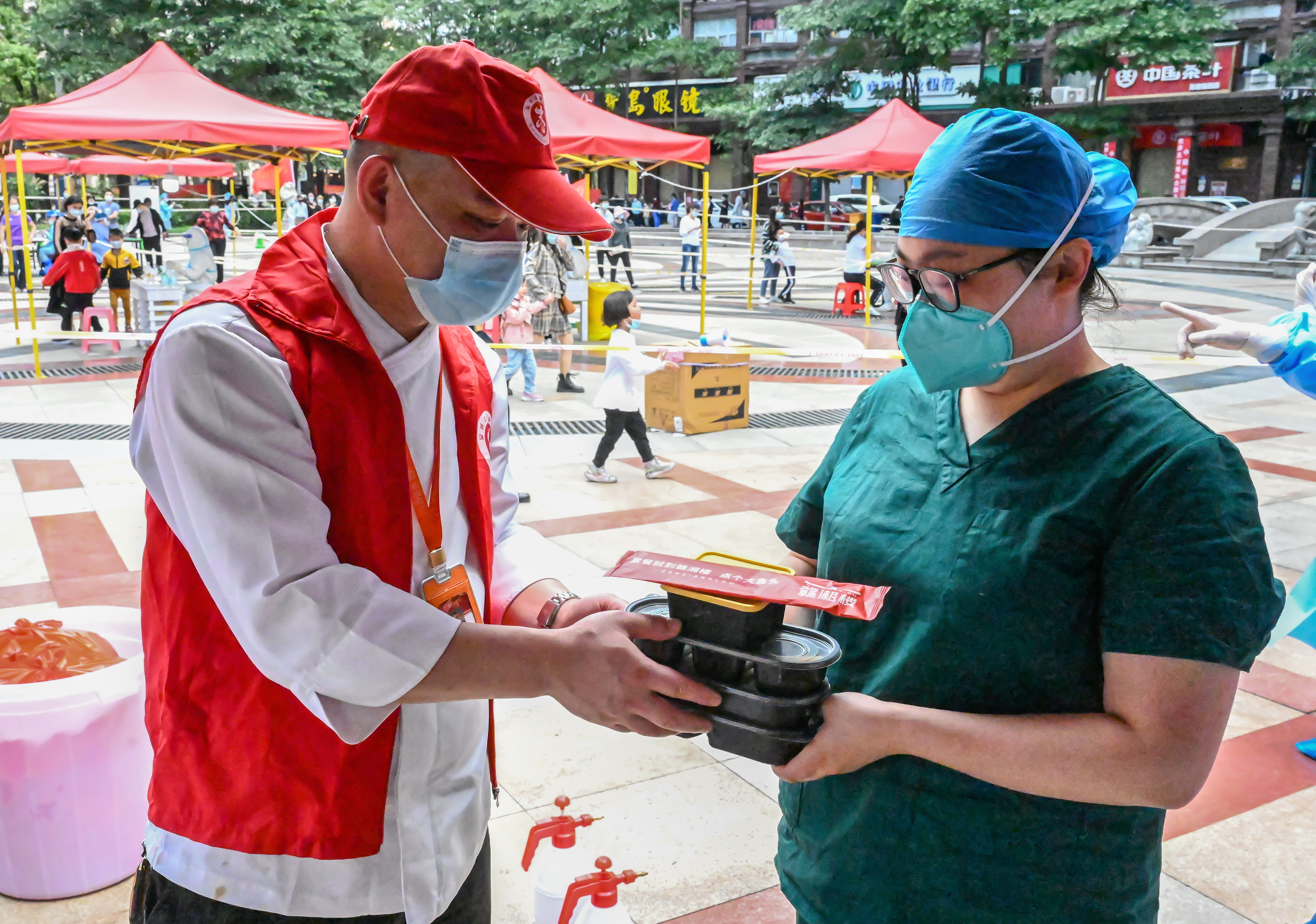 新华社照片,泉州(福建),2022年3月18日 一份餐,一片情,温暖一座城 3月18日,餐饮店志愿者在泉州市丰泽区一处核酸检测点发放爱心午餐。 在疫情防控的特殊时期,为了让抗疫人员吃上热饭菜,福建省泉州市近50家餐饮店组成“爱心送餐联盟”,进行公益捐餐。10份、200份、5000份……爱心送餐清单一直延续。截至当日中午12点,泉州市爱心餐已累计送出超8000份。战“疫”不停,爱不打烊,餐饮店商家用爱心温暖着疫情防控一线的人们。 新华社发(周义 摄)