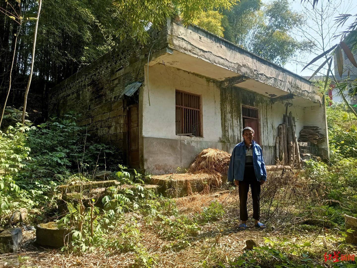 ↑兰顺柏站在老屋前,儿子兰红军和一家人曾在这里生活