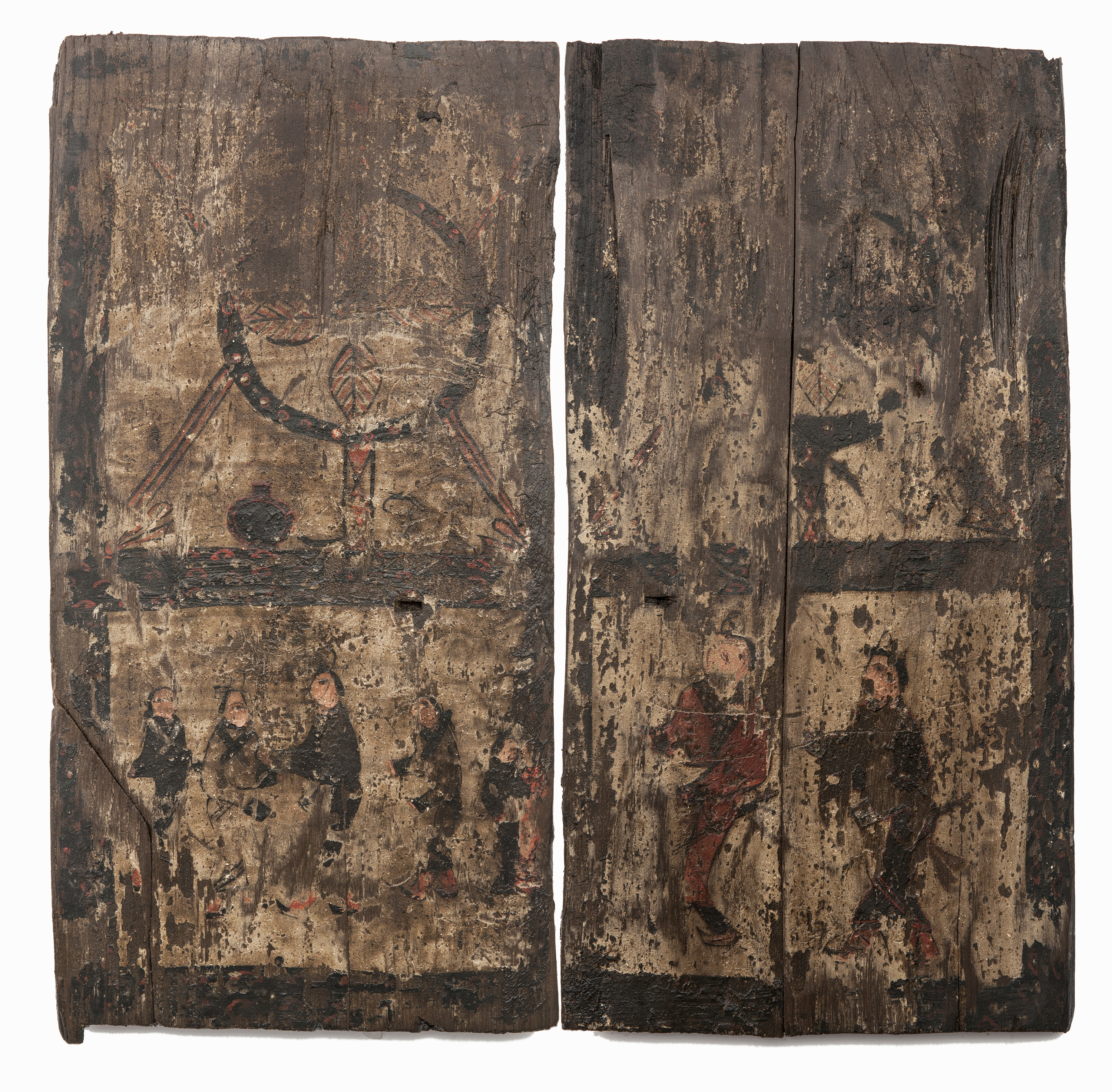 新华社照片,北京,2022年3月18日 “2021年中国考古新发现”评选在京揭晓 湖北云梦县郑家湖战国秦汉墓地的一处板门绘画(资料图)。 3月18日,“中国社会科学院考古学论坛·2021年中国考古新发现”在中国历史研究院举行。论坛上揭晓了“2021年中国考古新发现”,四川稻城县皮洛旧石器时代遗址、河南南阳市黄山新石器时代遗址、四川广汉市三星堆商代遗址、江西樟树市国字山战国墓葬、湖北云梦县郑家湖战国秦汉墓地、甘肃武威市唐代吐谷浑王族墓葬群等6个考古项目入选。 新华社发