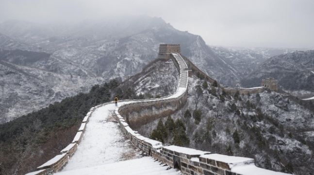 3月18日,北京迎来降雪,司马台长城银装素裹。(吴强摄/人民图片)
