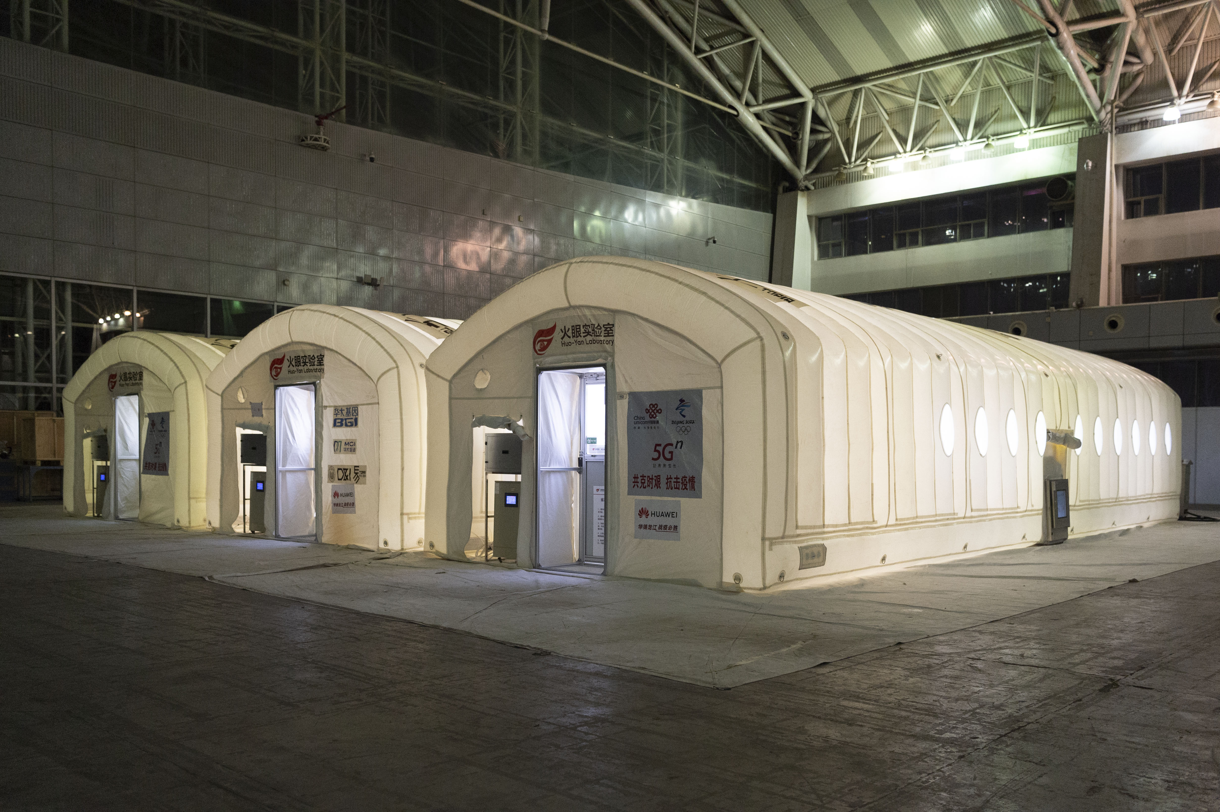 新华社照片,哈尔滨,2022年3月19日 夜访哈尔滨日检能力超百万人份移动实验室 3月18日晚在哈尔滨市移动实验室拍摄的气膜实验室。 3月18日晚,在哈尔滨国际会展体育中心搭建的核酸检测实验室——哈尔滨市移动实验室全面投入使用。该实验室于3月13日开始搭建。 据了解,该移动实验室占地1.2万平方米,由移动帐篷、气膜实验室、移动检测车三种实验室组成,最高日检测能力超过100万人份。 新华社记者 谢剑飞 摄