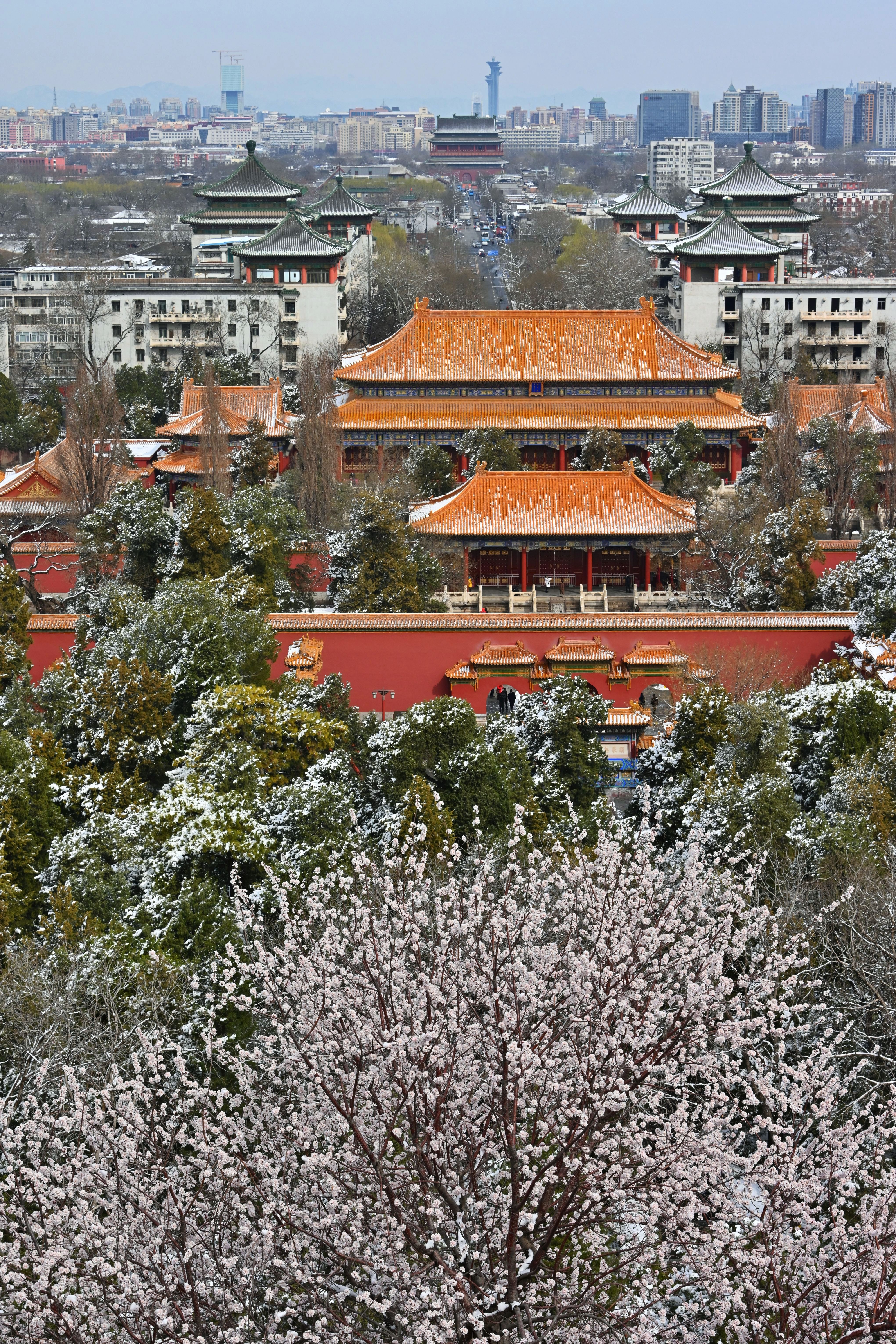 新华社照片,北京,2022年3月19日 雪后北京 3月19日在景山公园拍摄的雪景。 3月19日,春雪过后的北京景色宜人。 新华社记者 宋为伟 摄