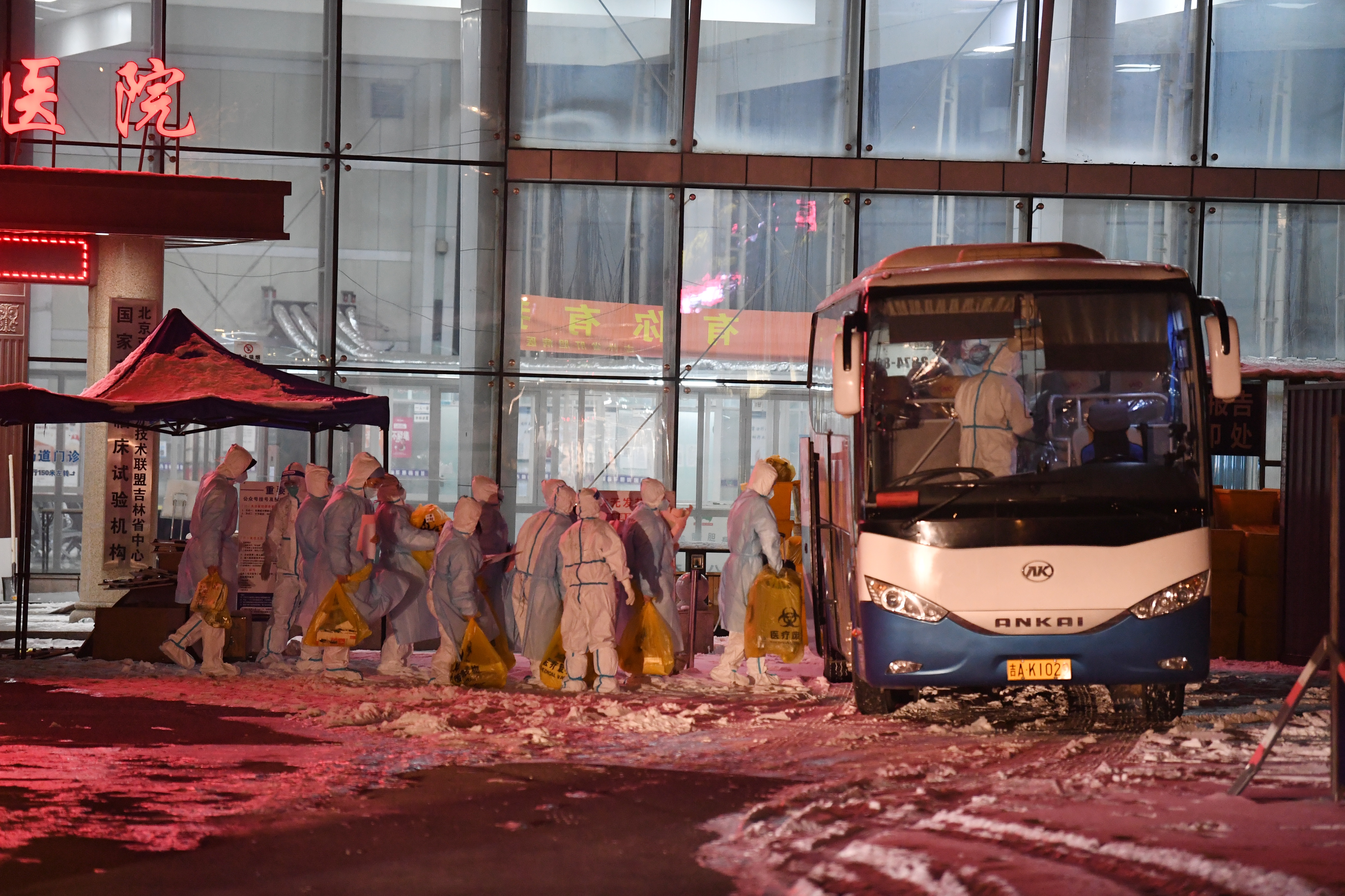 新华社照片,长春,2022年3月19日 长春市首批21名新冠肺炎患者治愈出院 3月18日,治愈患者登上转运车辆。 3月18日22时30分,本轮疫情长春市首批21名新冠肺炎轻症患者从吉林省肝胆病医院康复出院。 新华社发(张扬 摄)