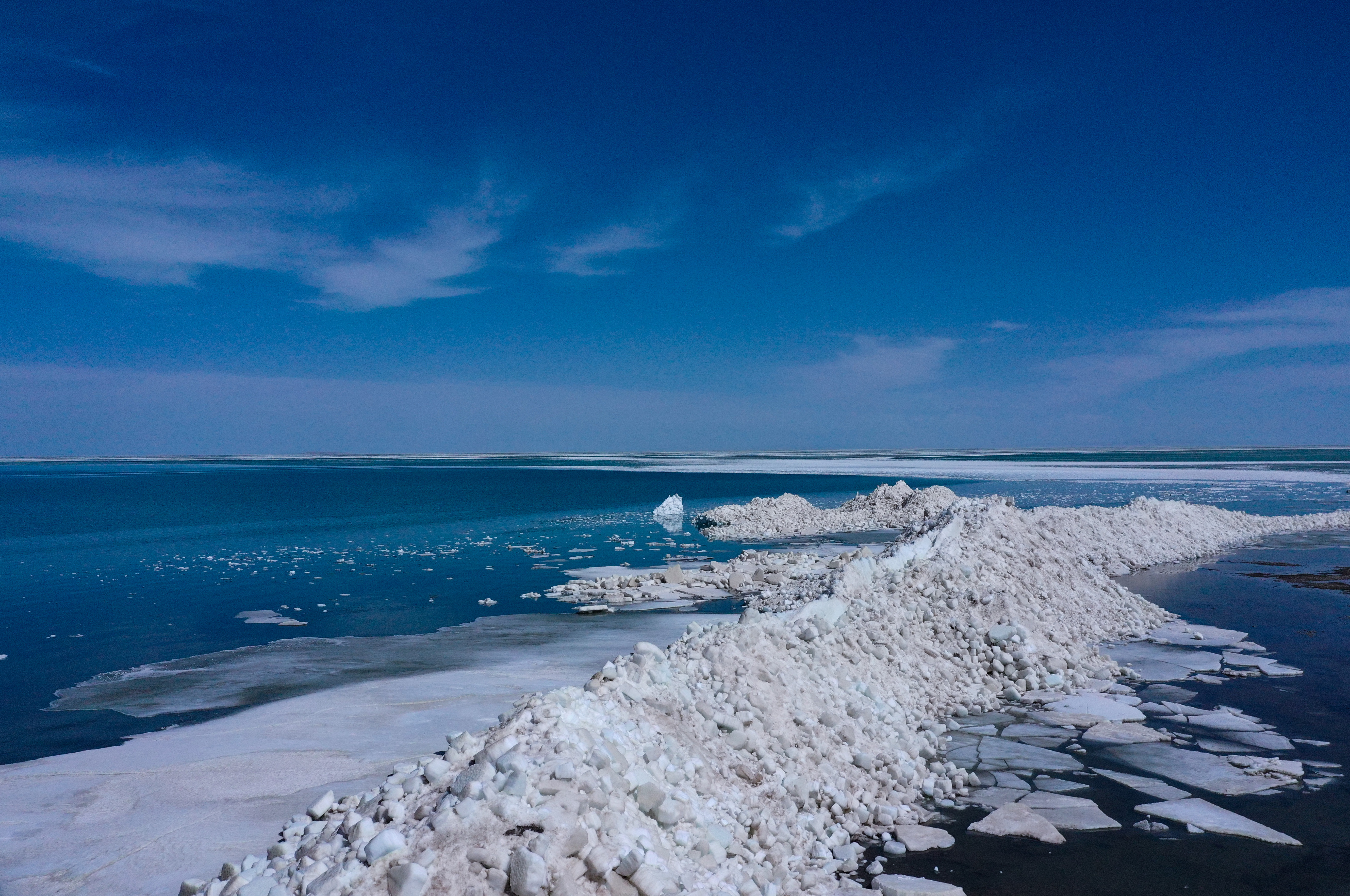 新华社照片,共和(青海),2022年3月19日 青海湖出现解冻迹象 这是3月19日拍摄的青海湖岸边的湖冰(无人机照片)。 伴随着气温回升与大风天气的持续作用,青海湖西北岸大部分地区、泉湾湿地、鸟岛、仙女湾等区域陆续出现较大范围的解冻水体。被誉为青藏高原“蓝宝石”的青海湖正在逐步褪去冰衣。 据了解,青海湖封冻期一般历时4个多月,通常于每年4月中旬完全解冻,今年出现解冻迹象要早于往年。这种湖面完全解冻的自然现象被称作“开湖”。 新华社记者 张龙 摄