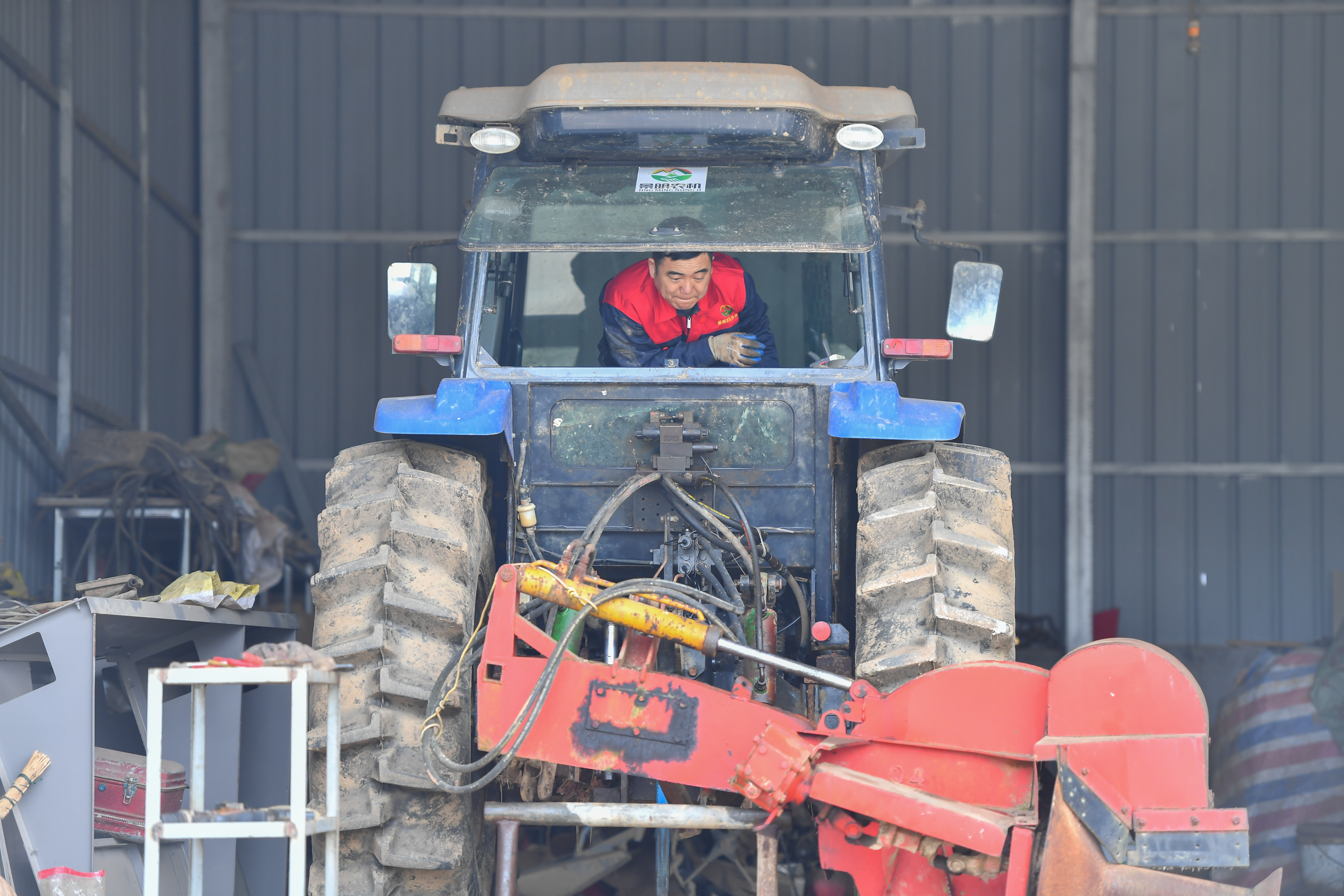 这是胡景明在查看一台修理过的农机。新华社记者 陈泽国 摄