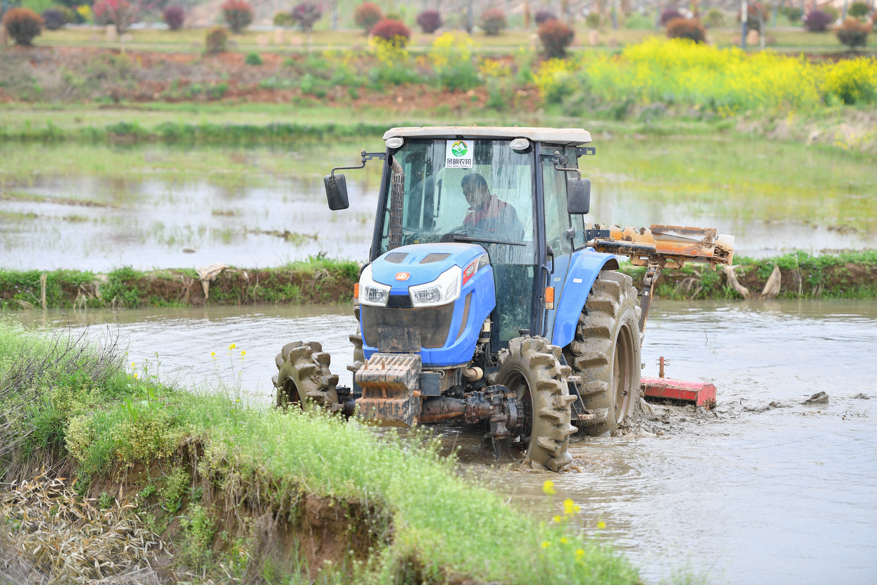 这是胡景明驾驶一台安装了“农机水平仪”的拖拉机在田间作业。新华社记者 陈泽国摄