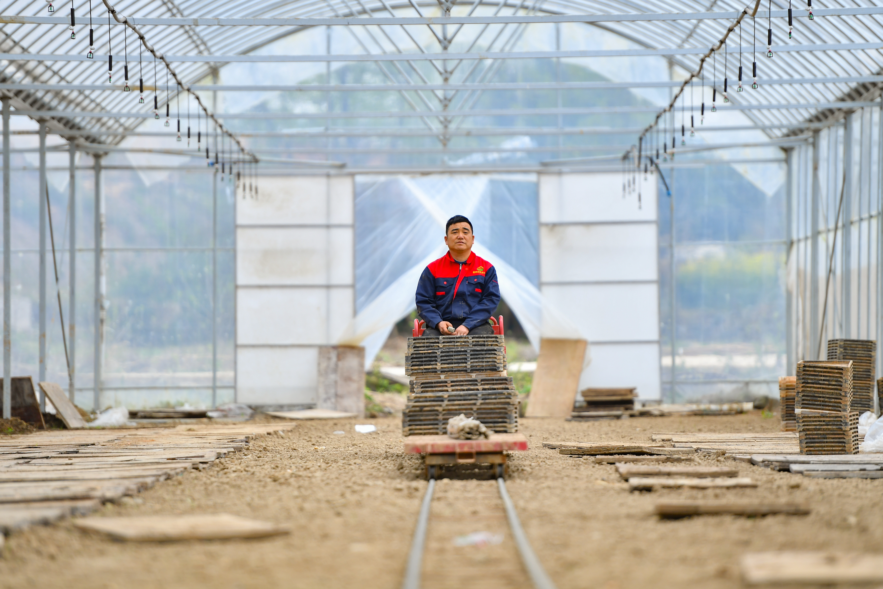 这是胡景明手握遥控器在驾驶“育秧轨道车”。新华社记者 陈泽国 摄