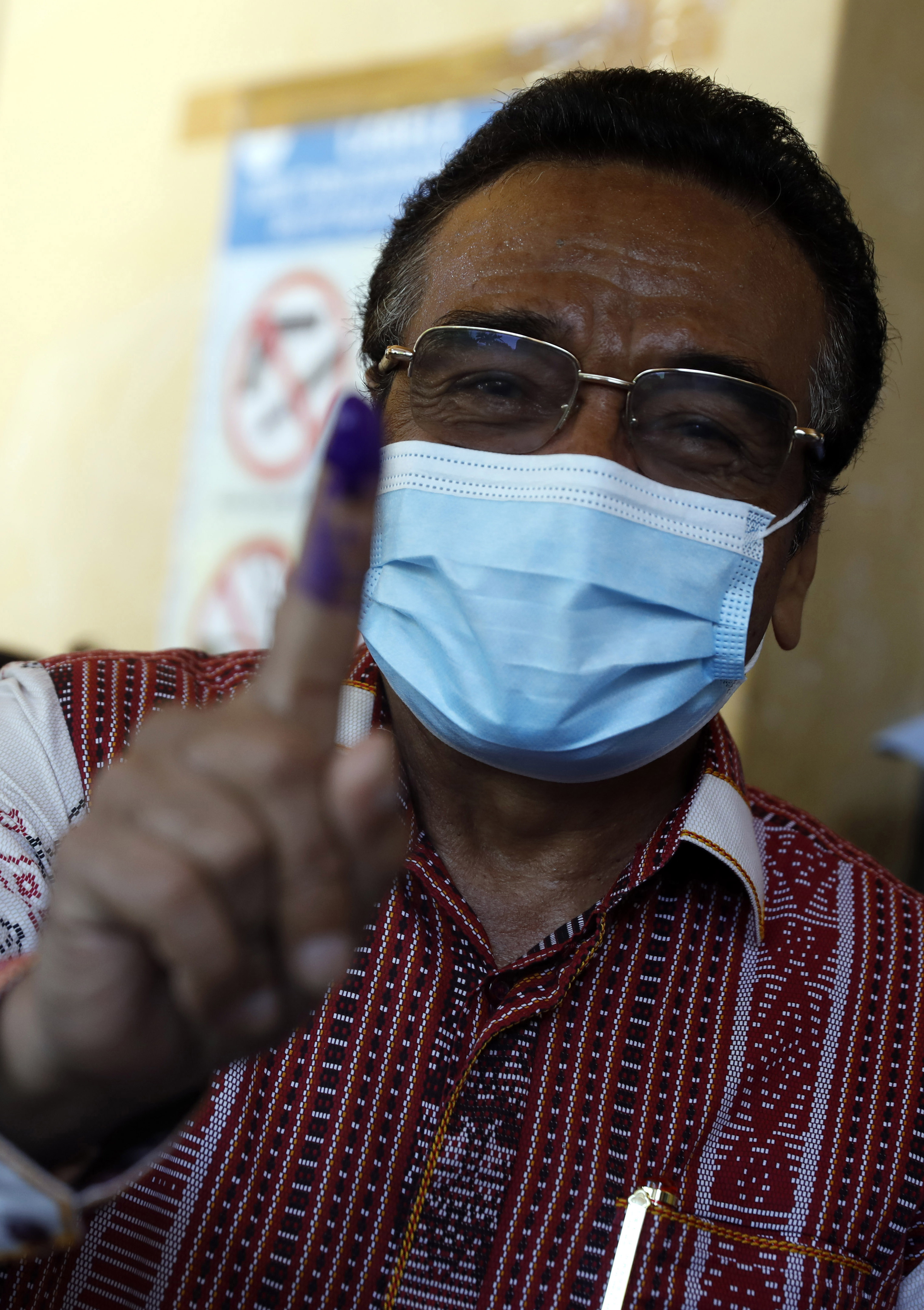新华社照片,帝力,2022年3月19日 (国际)(4)东帝汶总统选举开始投票 3月19日,东帝汶现任总统卢奥洛在帝力的一处投票站投票后展示手指上的墨水。 东帝汶独立以来的第5次总统选举当地时间19日开始投票,投票结果将于数日内公布。 新华社发(阿莫里摄)
