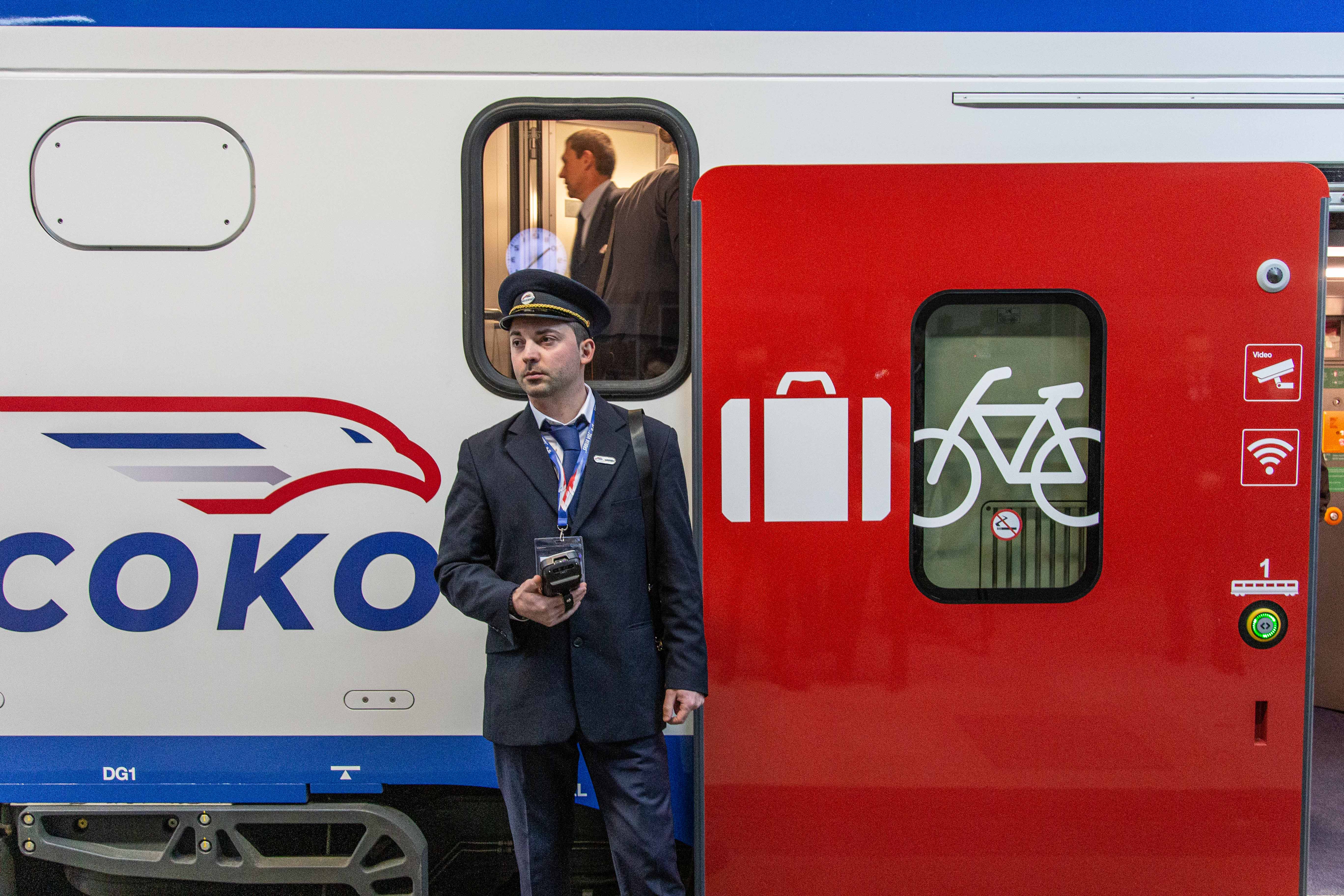 新华社照片,诺维萨德(塞尔维亚),2022年3月20日 (国际)(7)匈塞铁路塞尔维亚境内贝诺段开通运营 3月19日,在塞尔维亚首都贝尔格莱德,一名乘务员在等待乘客上车。 匈塞铁路塞尔维亚境内塞首都贝尔格莱德至中北部城市诺维萨德段(贝诺段)19日开通运营,塞尔维亚总统武契奇、总理布尔纳比奇和匈牙利总理欧尔班等出席在诺维萨德举行的开通仪式。 新华社发(王韡摄)