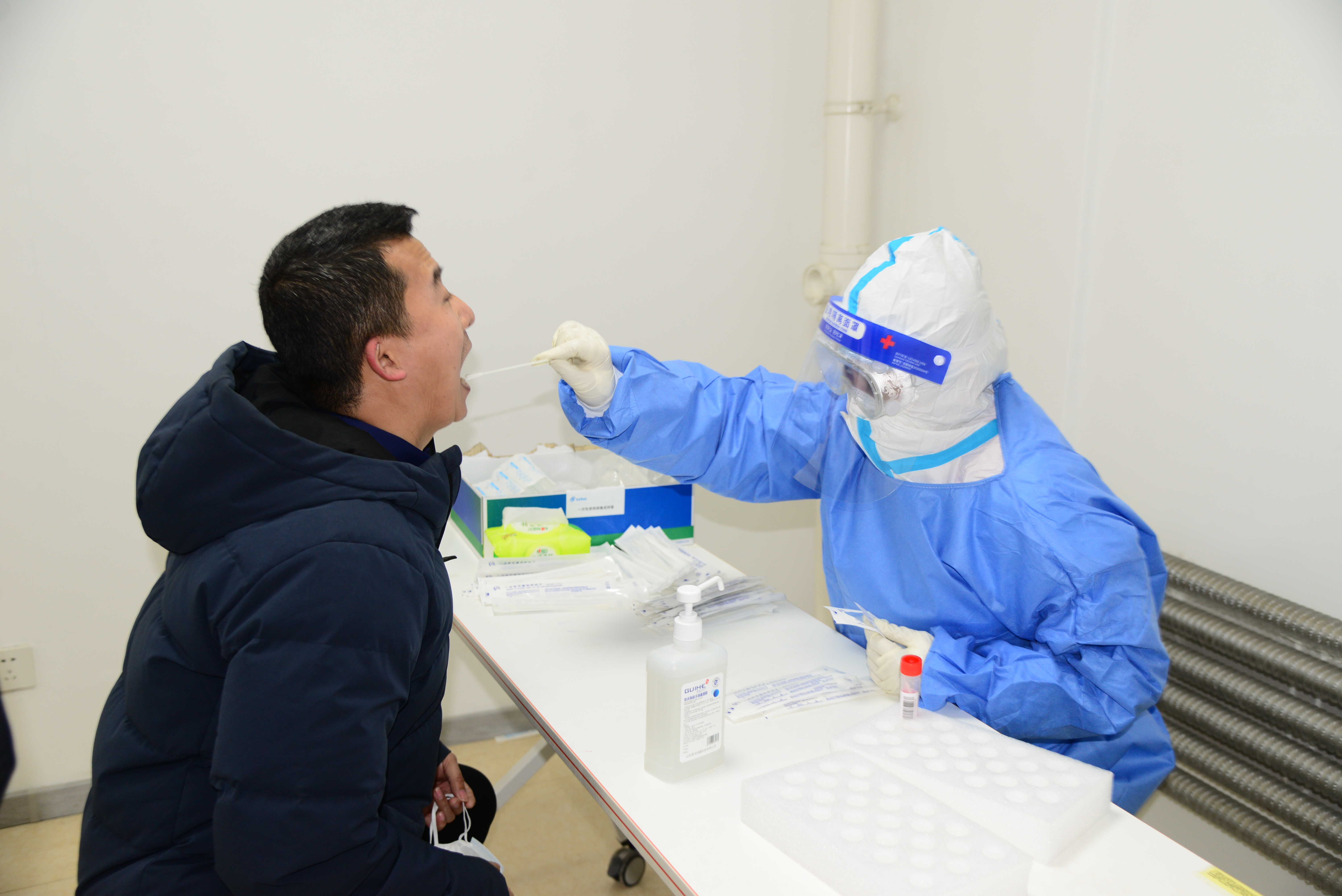 新华社照片,长春,2022年3月20日 长春开启新一轮核酸检测 3月20日,在长春市南关区明珠街道一处核酸检测采样点,一名市民在接受核酸采样。 3月19日,长春市疫情防控指挥部发布通告,为以最快速度实现社会面清零,早日恢复正常生产生活秩序,经研究决定即日起在全市三天全员核酸检测期间,对所有小区(村)和社会面实行提级管控。 新华社记者 张建 摄