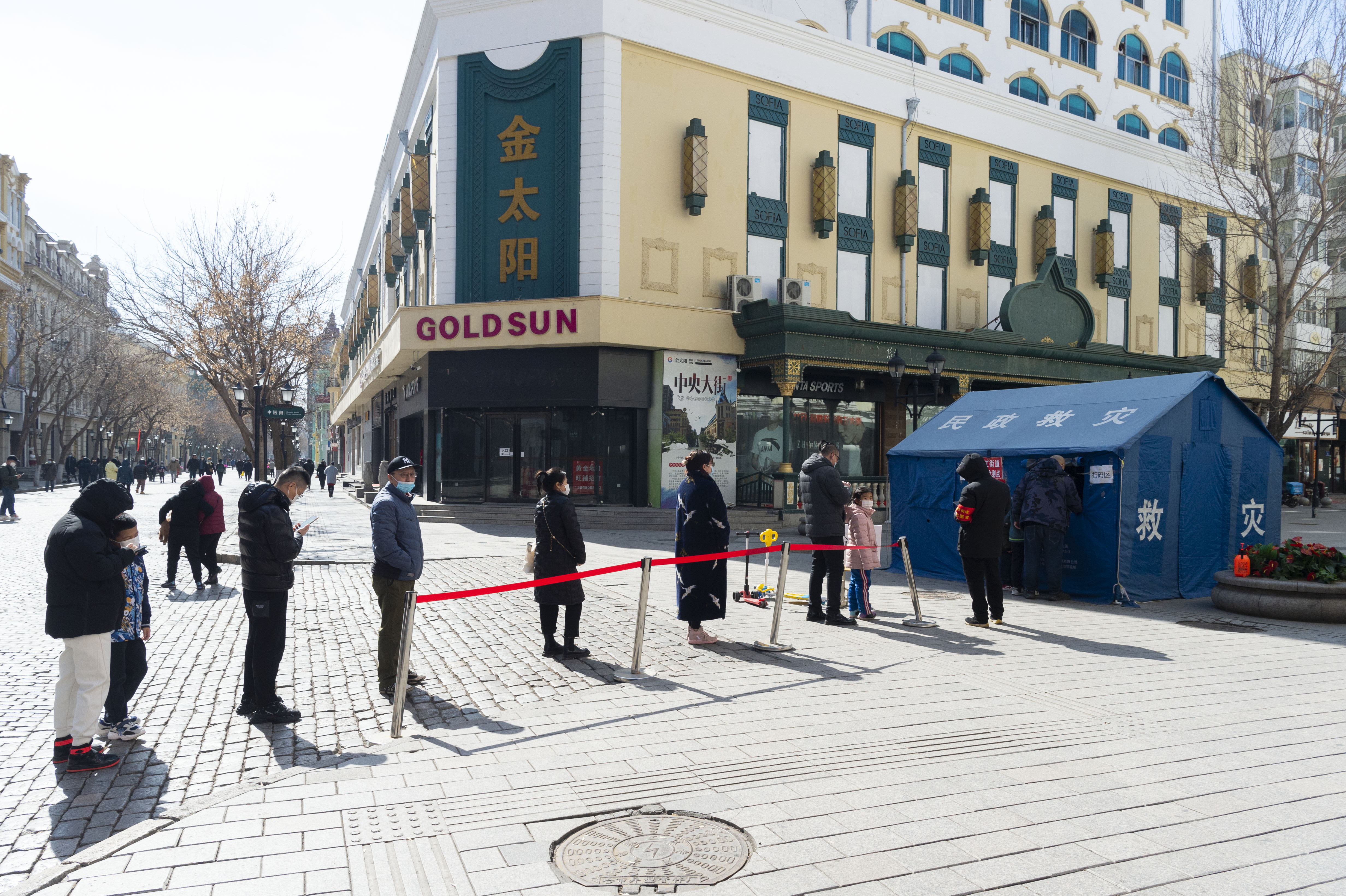 新华社照片,哈尔滨,2022年3月20日 哈尔滨:实施严格防控措施 阻断疫情传播链 3月20日,在哈尔滨市道里区一处核酸检测采样点,市民排队等待核酸采样。 3月19日,哈尔滨市应对新型冠状病毒感染肺炎疫情工作指挥部发布公告,实施严格人员流动管理、严格交通出行管理、严格经营场所管理、严格社区(村屯)管理等多项防控措施,阻断疫情传播链,力争用最短时间和最小成本实现社会面清零。 新华社记者 谢剑飞 摄